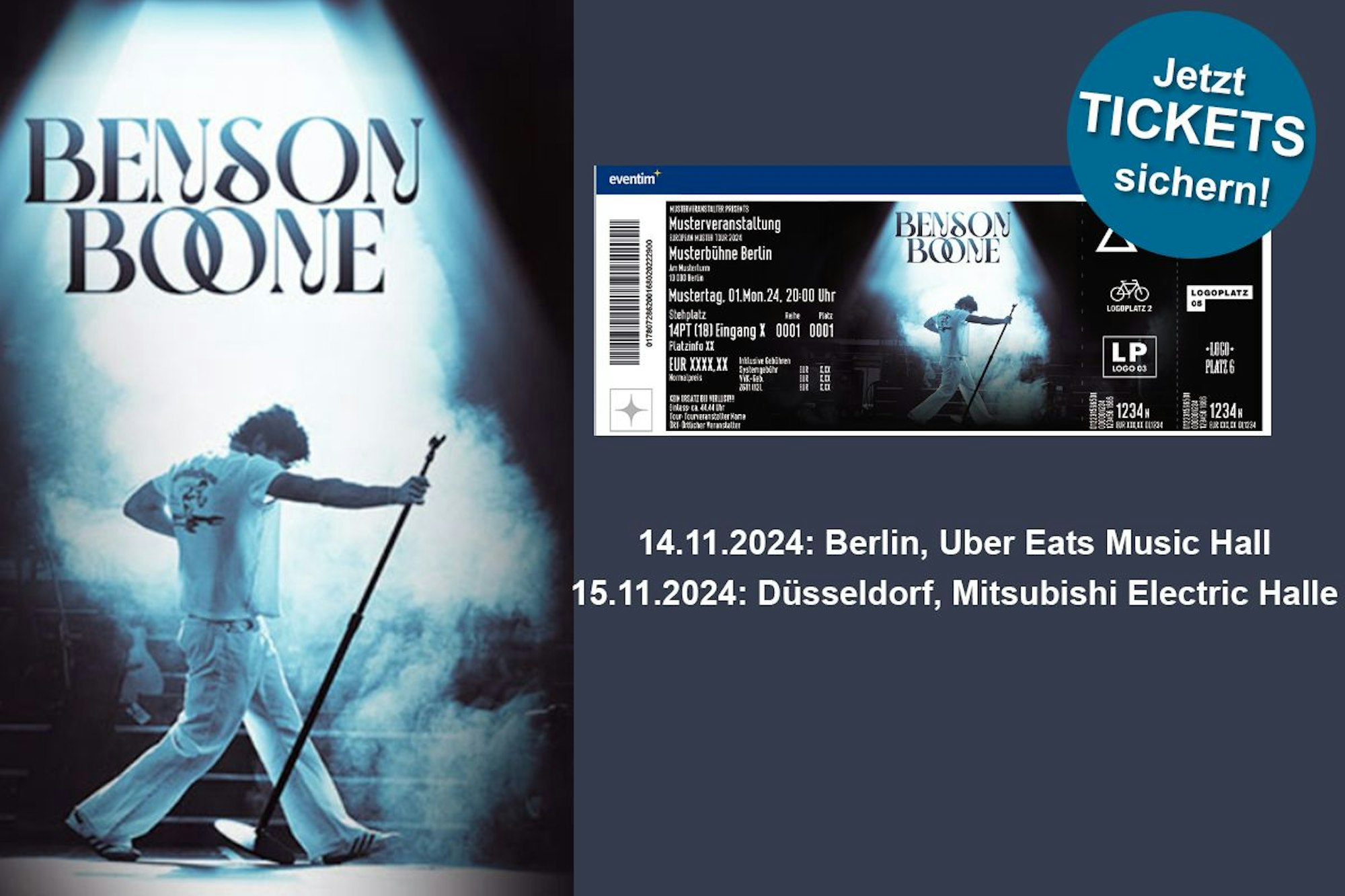 Der Vorverkauf für die beiden Deutschland-Konzerte von Benson Boone im November 2024 bei Eventim hat begonnen!