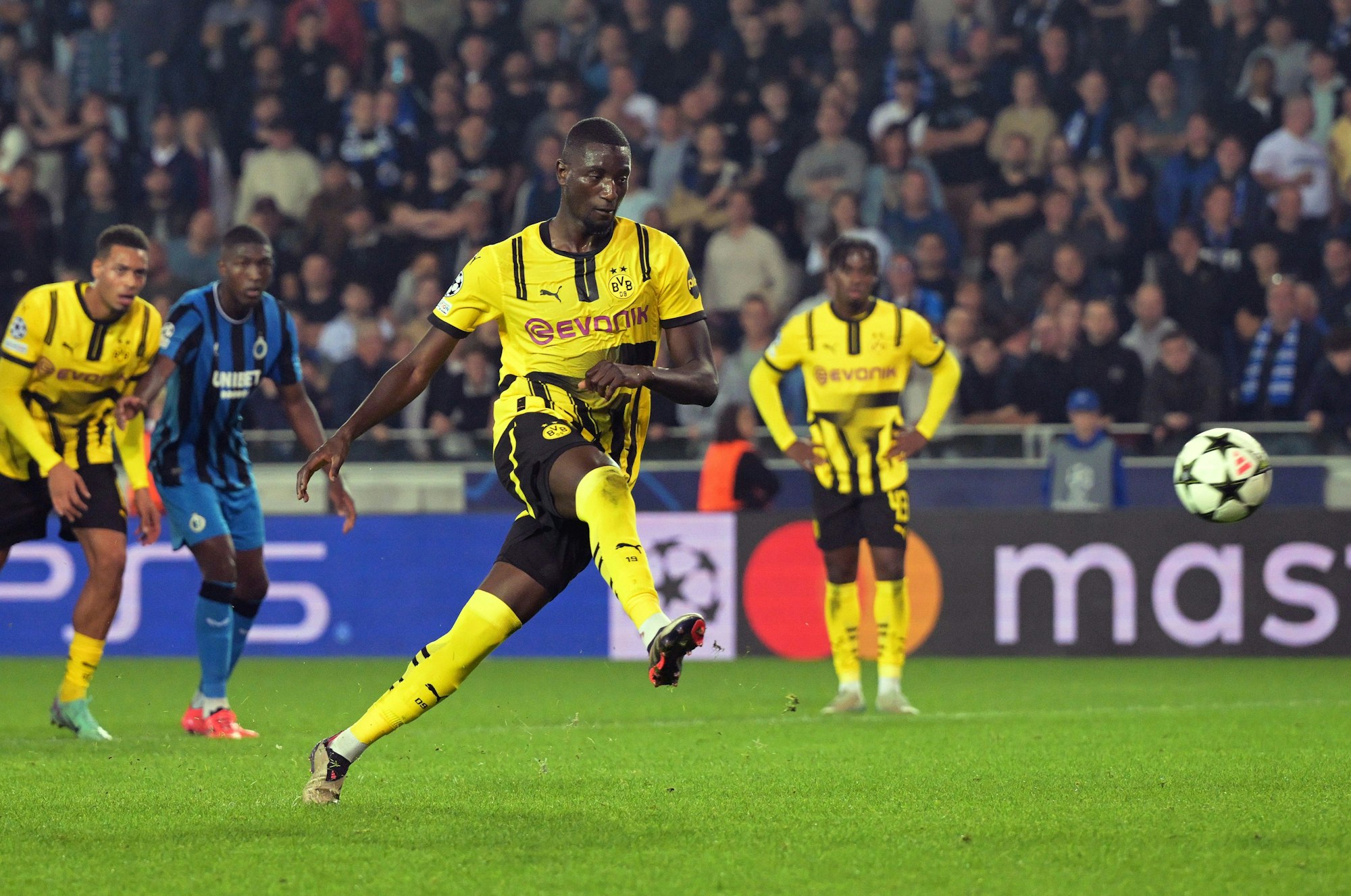 Serhou Guirassy erzielt das 3:0 für Borussia Dortmund gegen Brügge per Elfmeter.