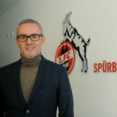 Geschäftsführer Alexander Wehrle vor dem neuen FC-Claim „Spürbar anders“.