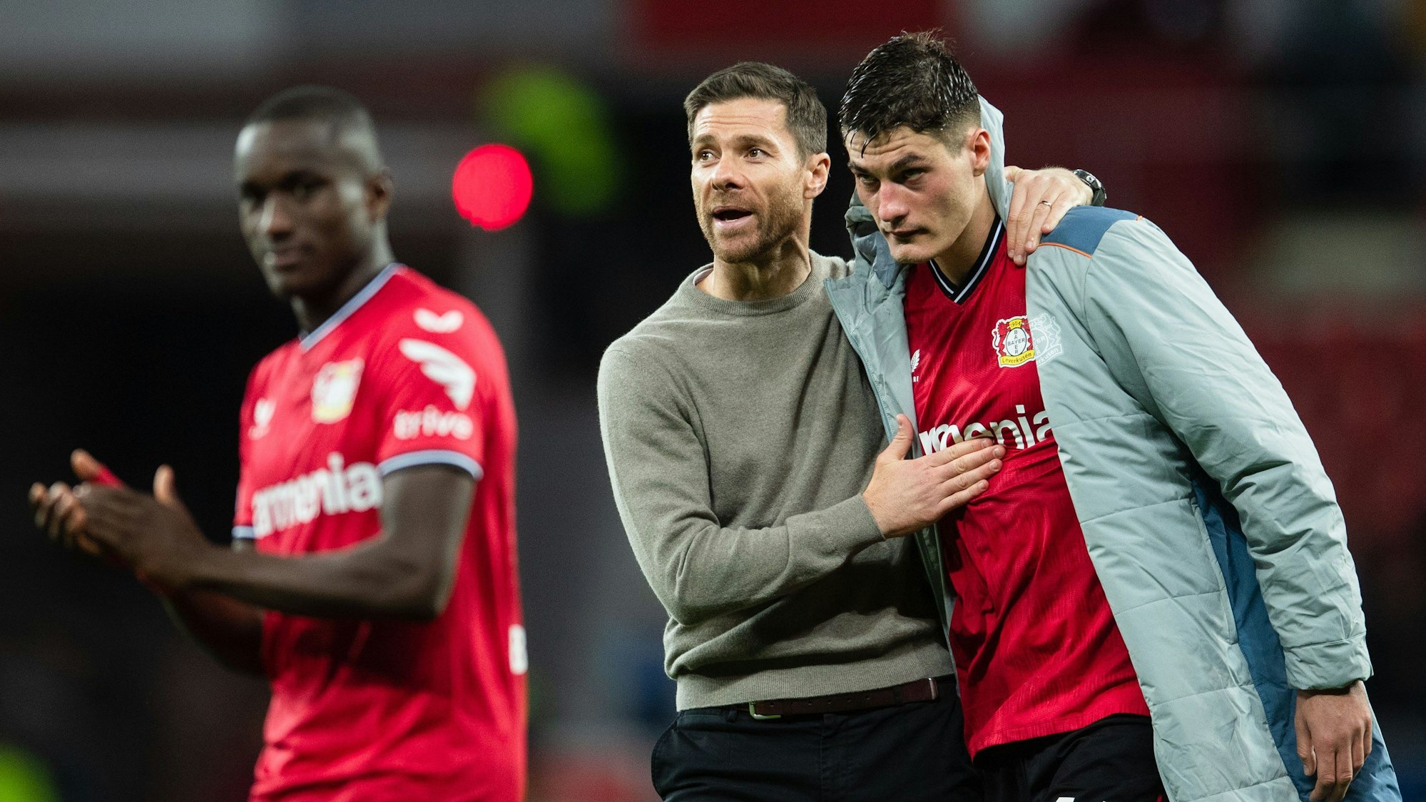 Zuletzt wurde der Mittelstürmer jedoch wieder beim lockeren Training auf dem Platz gesichtet. „Er braucht aber noch mehr Zeit“, sagt der Trainer, „wir wollen diesmal den richtigen Moment für das Comeback abwarten.“ Der könnte allerdings noch während dieser Saison sein. „Er ist eine Option“, stellt Xabi Alonso klar. Weiter will der Pragmatiker Xabi Alonso sowieso nicht denken. Deshalb lassen ihn auch die Gerüchte um Jeremie Frimpong kalt, der laut Meldungen des Transferexperten Fabrizio Romano in den Fokus von Manchester United, Bayern München und des FC Barcelona geraten sein soll. Diese Top-Klubs hätten, so der Italiener, Kontakt zum Management des 22-Jährigen aufgenommen, dessen Schnelligkeit auf der rechten Außenbahn europaweit ihresgleichen sucht.