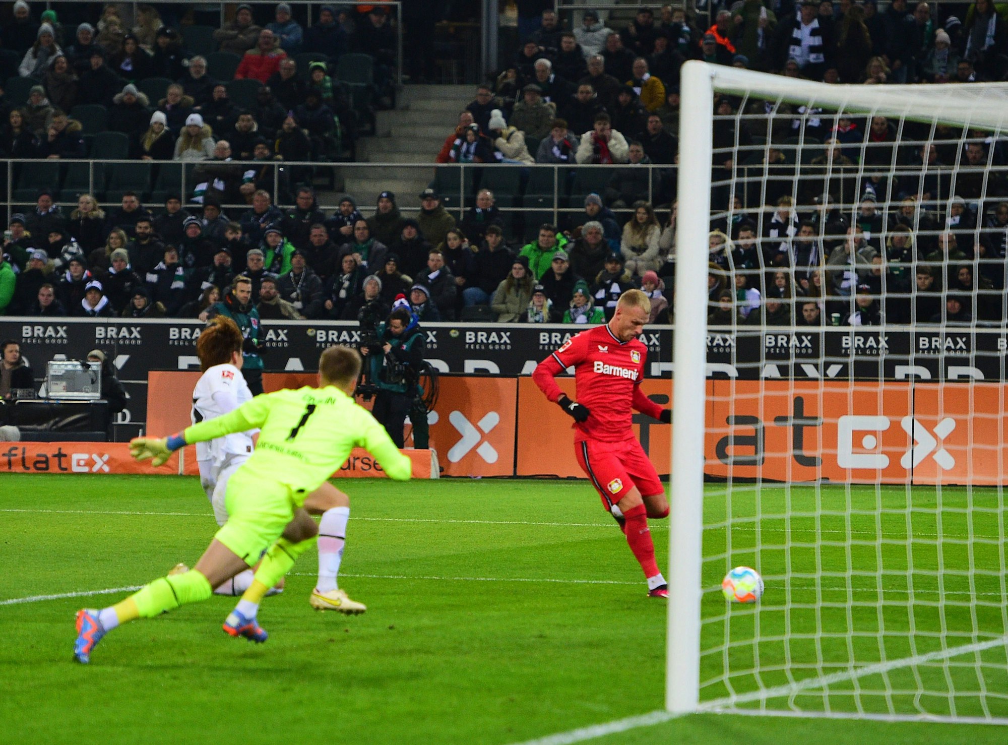 Mitchel Bakker erzielt das 1:0 in Mönchengladbach, laut Xabi Alonso ein "Kack-Tor"