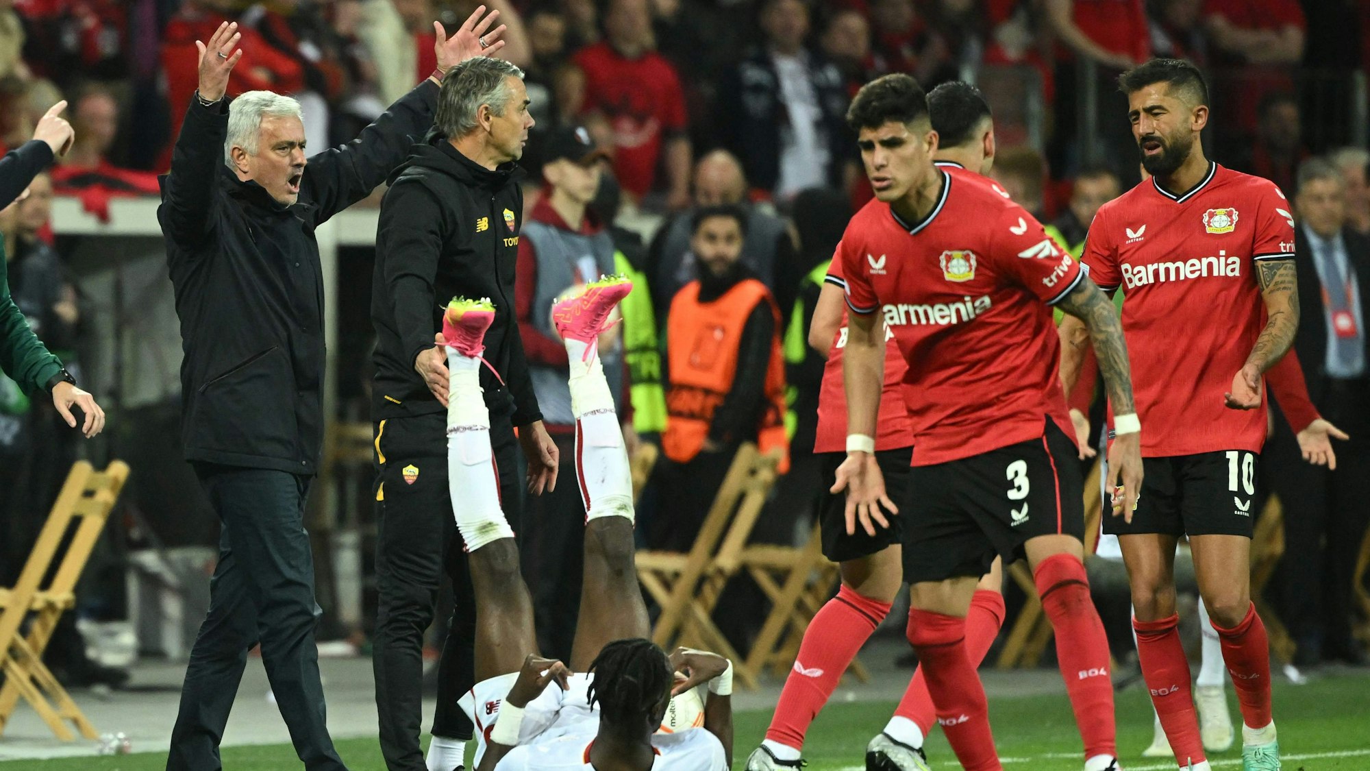 So war es geradezu folgerichtig, dass ein einziges Tor, der Treffer des 20-Jährigen Edoardo Bove aus dem Hinspiel, ein Halbfinale mit vier Halbzeiten entschied. Im Olympiastadion hatte die Roma naiven Leverkusenern das Fußballspielen sieben Tage zuvor noch schwer gemacht. Im Rückspiel hat sie sich dem Fußball dann gänzlich verweigert. Mourinho ließ eine Mauer aus Leibern errichten, alle Wege versperren, Bälle ohne zweite Absicht aus der Gefahrenzone ballern und hieß seine Spieler, sich bei jedem Anlass einfach auf den Boden zu setzen oder legen, damit die Uhr das einzige ist, das weiterlaufen kann.