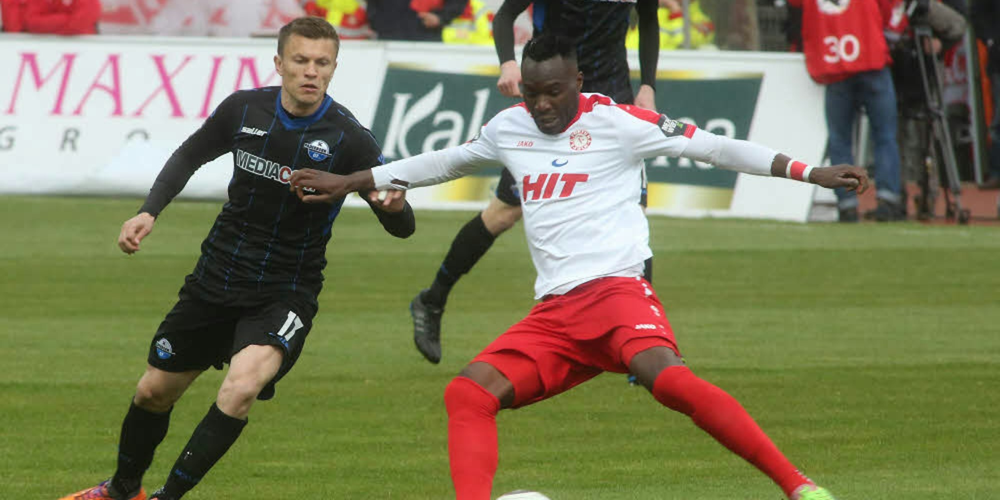 Cedric Mimbala (rechts) tritt mit der Fortuna als frischgebackener Vater in Münster an.