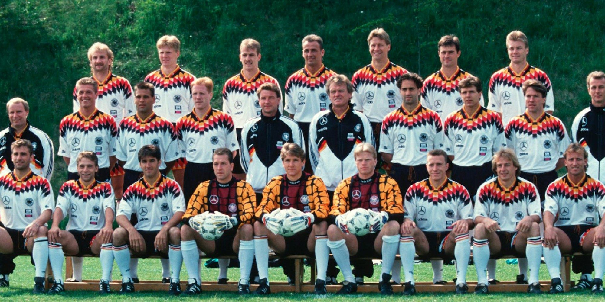 Bei der WM 1994 in den USA war das Trikot der deutschen Elf besonders bunt.