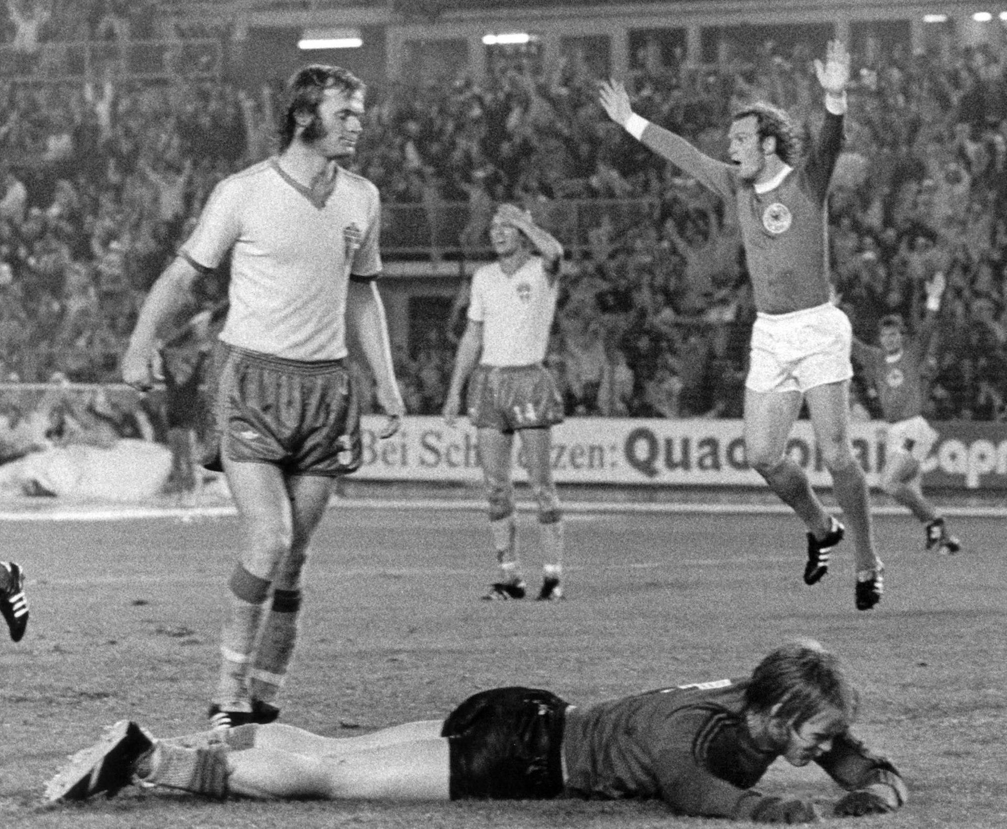 Spiel gedreht: Rainer Bonhof trifft in Düsseldorf zum 2:1 für Deutschland gegen Schweden bei der WM 1974.