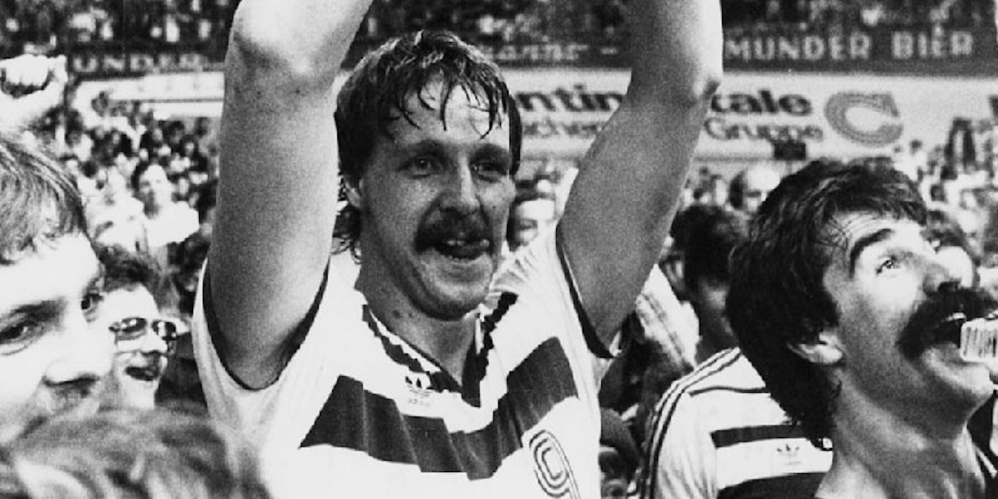 Erhard Wunderlich 1983 mit dem Europapokal für Gummersbach, rechts von ihm Heiner Brand.