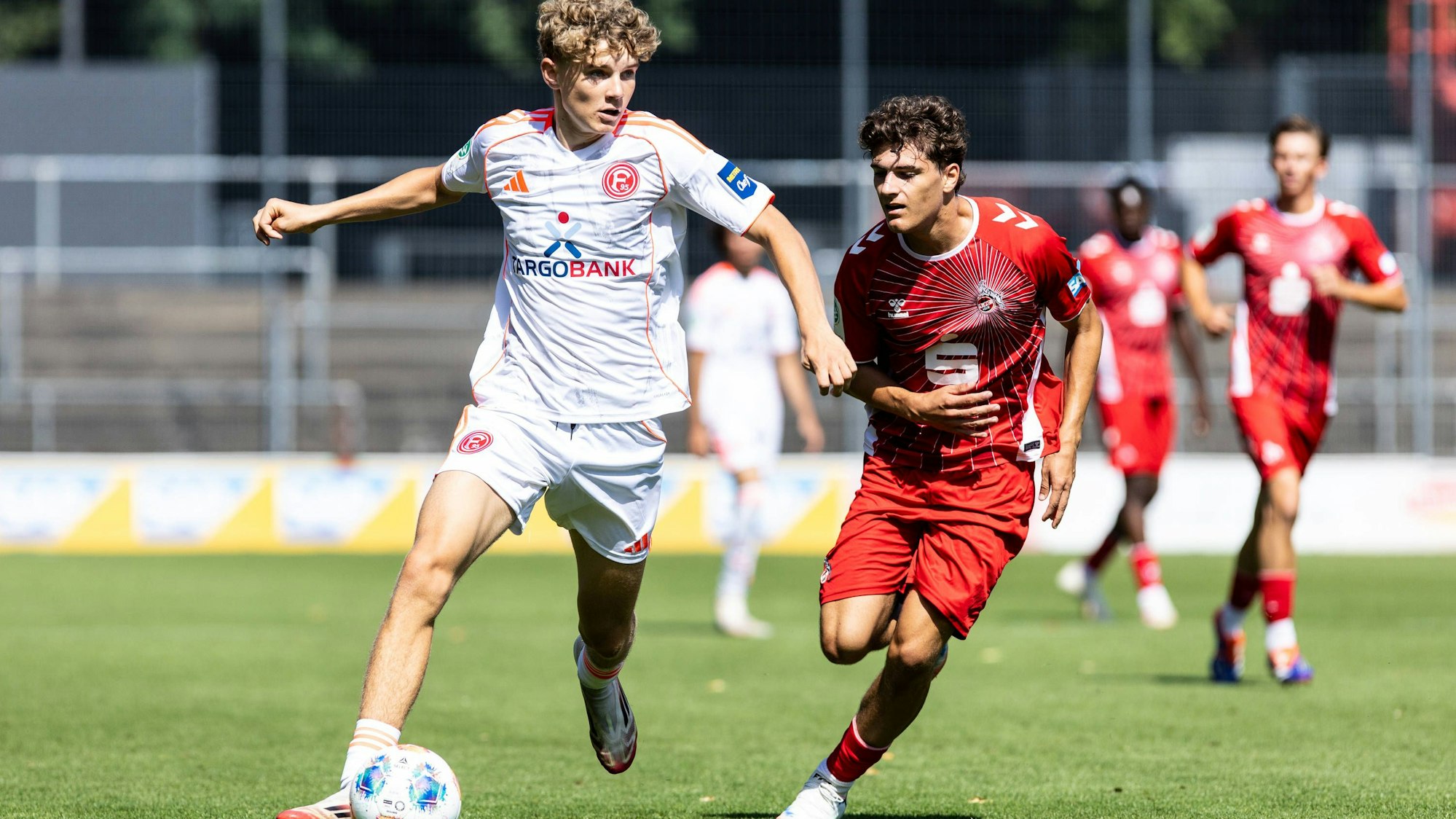 Alessandro Puzzo (rechts) feierte mit der U 19 des 1. FC Köln einen 2:0-Auftaktsieg gegen Fortuna Düsseldorf.