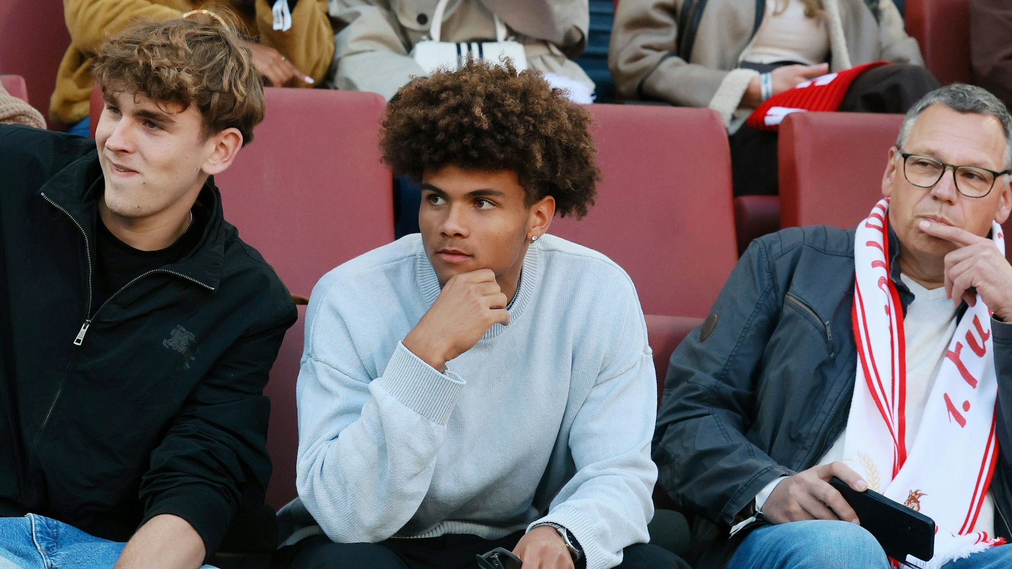 Neo Telle (m.) auf der Tribüne beim Spiel des 1. FC Köln gegen den VfB Stuttgart