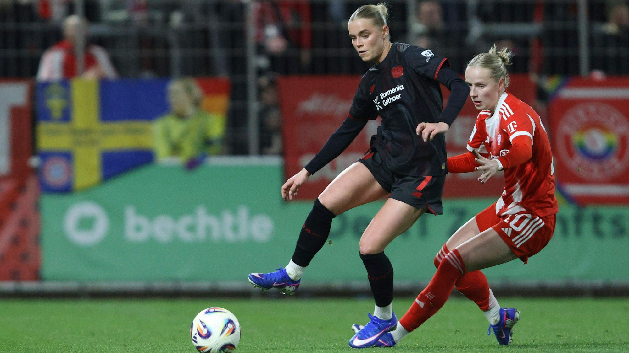 Cornelia Kramer (l.) spielte nach längerer Verletzungspause gegen den FC Bayern erstmals wieder von Beginn an für Bayer 04 Leverkusen.