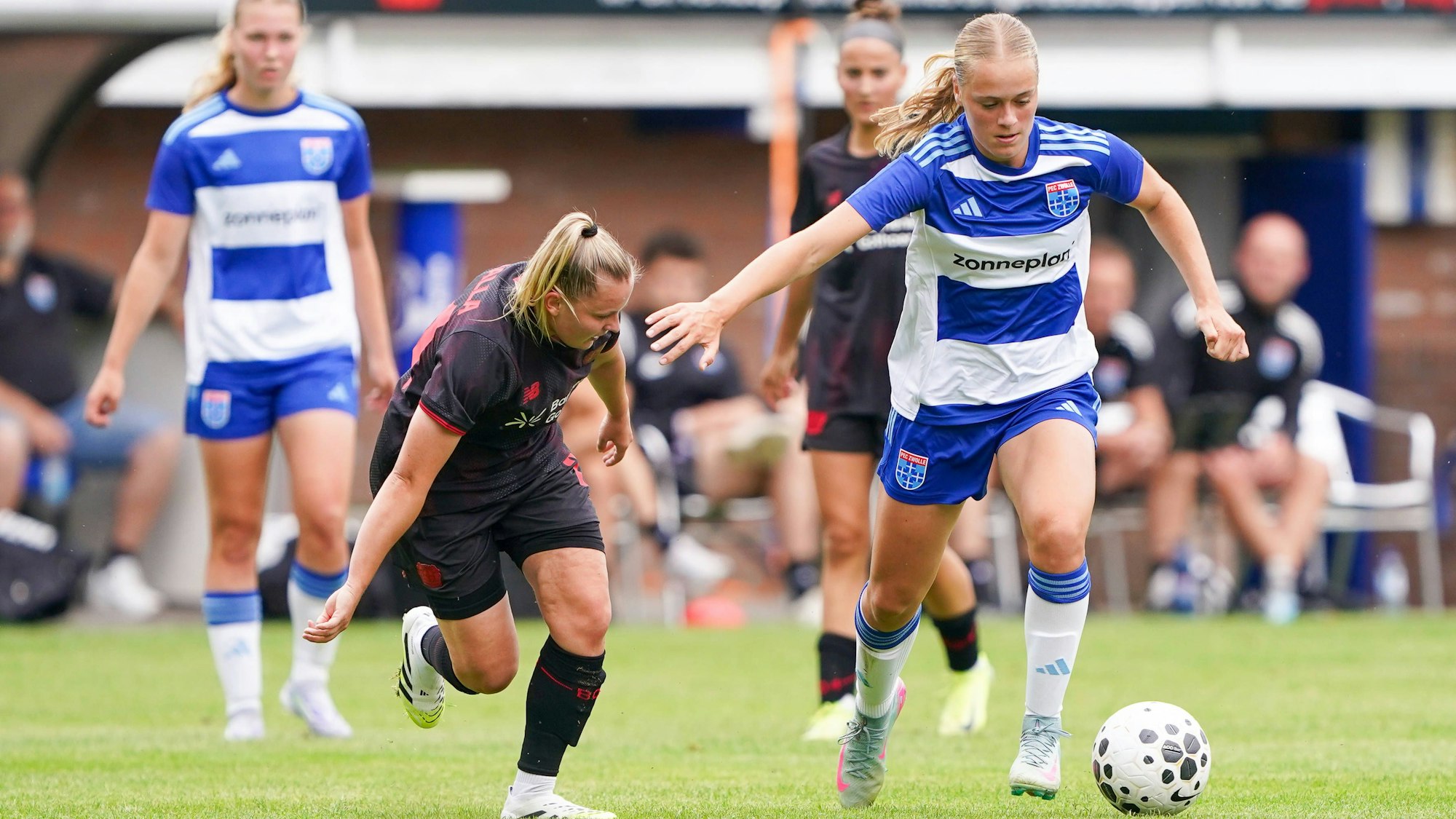Vanessa Fudalla (links), Zugang von Bayer 04 Leverkusen, im Testspiel gegen den niederländischen Klub PEC Zwolle.
