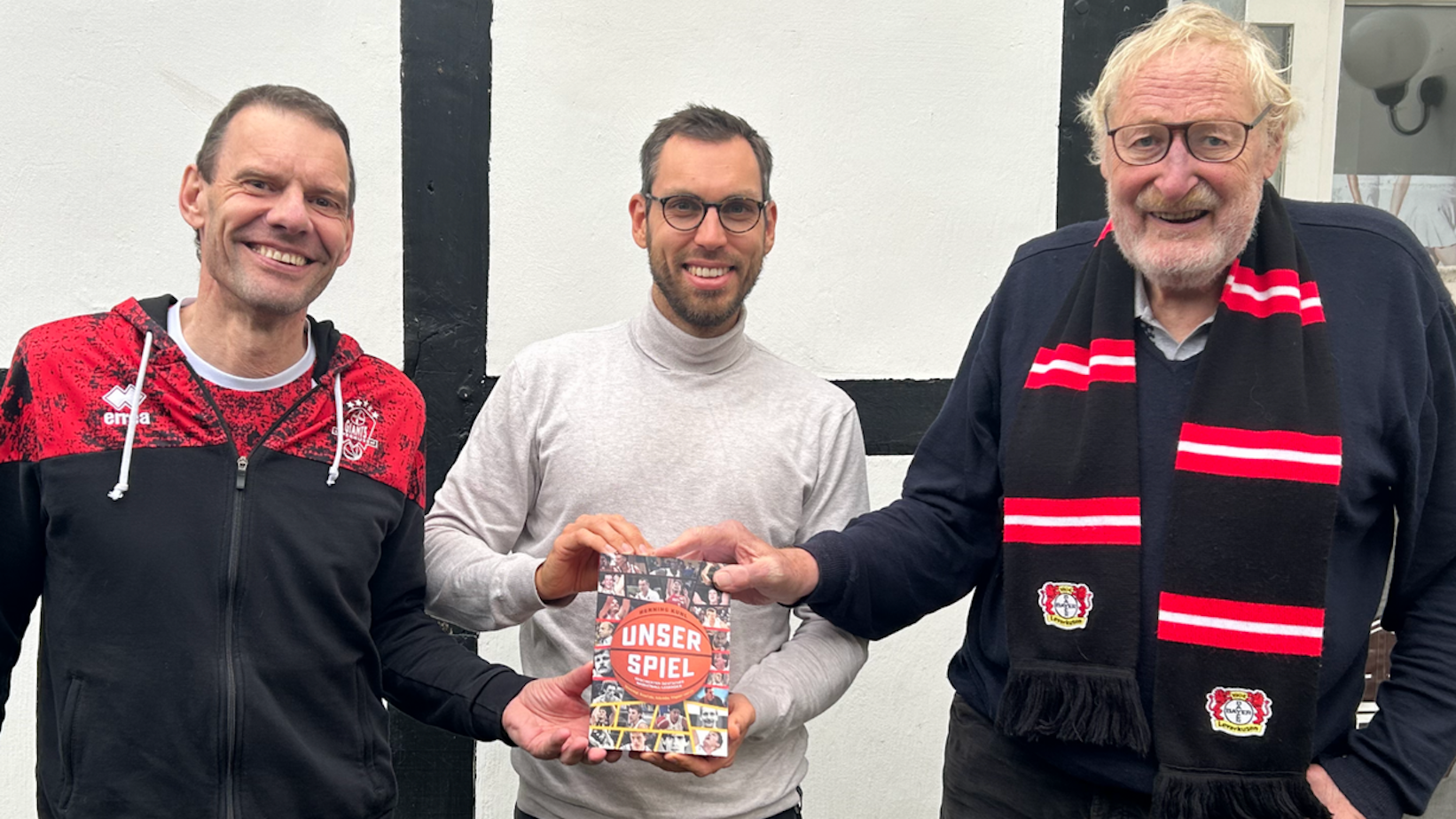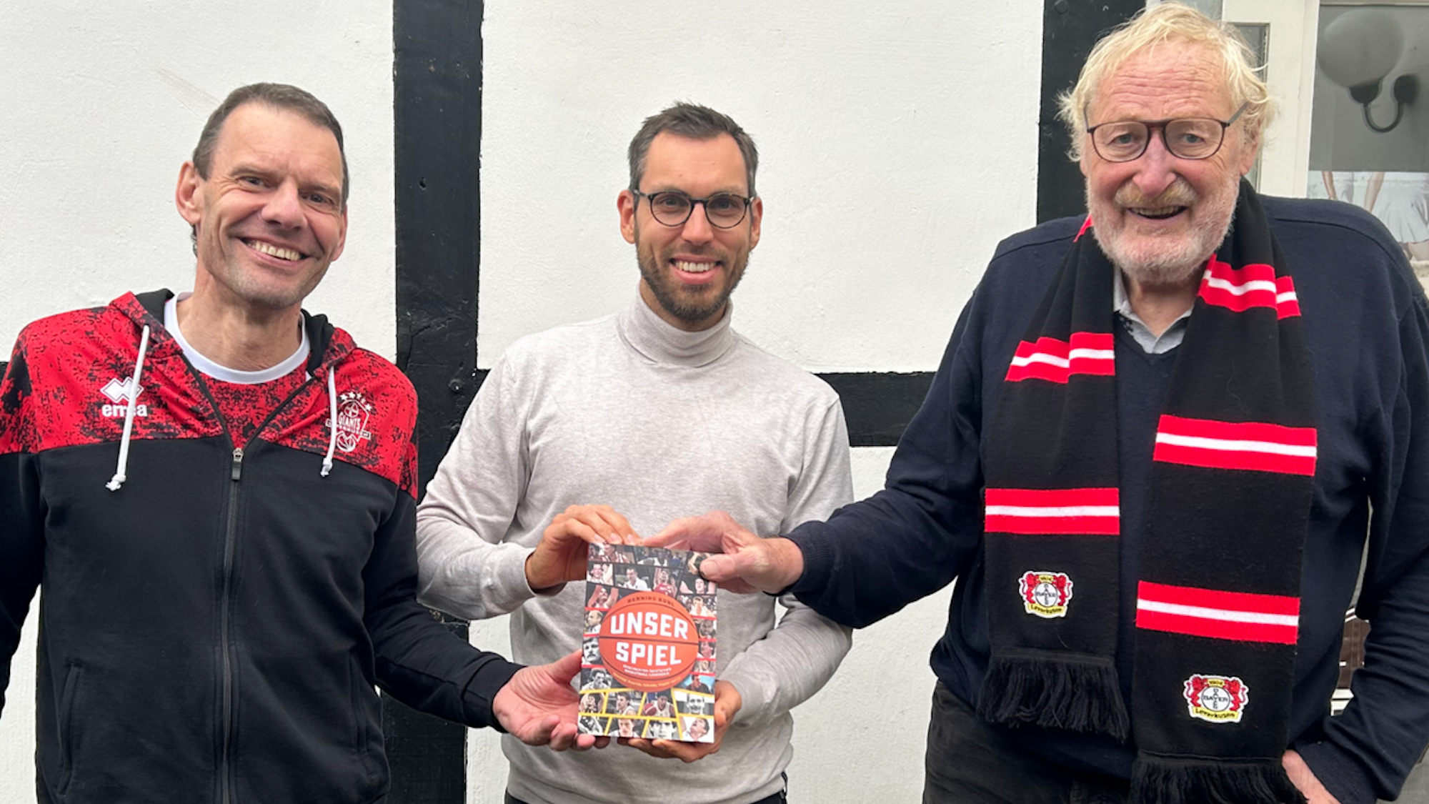 Buchautor Henning Kuhl mit den Leverkusener Basketball-Legenden Norbert Thimm (r.) und Michael Koch