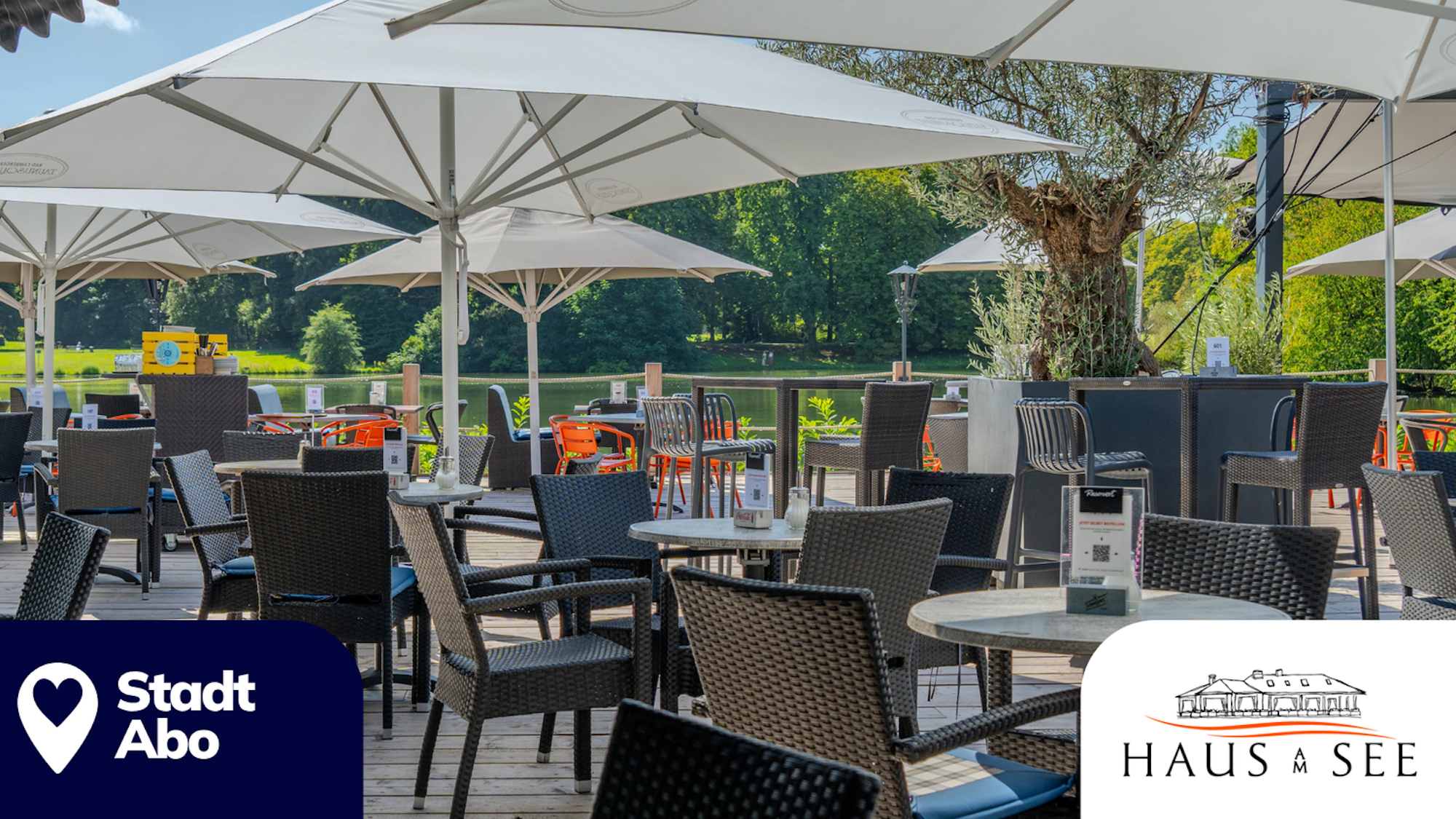 Im Haus am See erhalten Stadtabonnent:innen ein kostenloses Getränk zu jeder Hauptspeise!