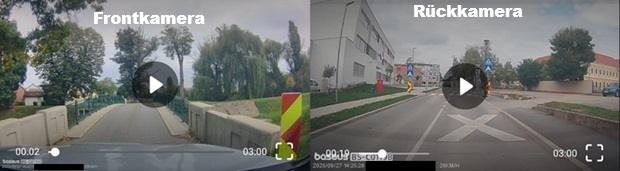Die Frontkamera arbeitet in 4K Ultra HD mit einem Sony IMX335 STARVIS Sensor und einem sechslinsigen Glasobjektiv mit f/1.6 Blende, was für detailreiche Aufnahmen sorgt. Die Rückkamera filmt in 1080p Full HD mit rund 120° Sichtfeld und liefert ausreichend Informationen im Nahbereich. Die Frontkamera übertrifft viele Standardmodelle, während die Rückkamera in sehr schlechten Lichtverhältnissen an Grenzen stößt.