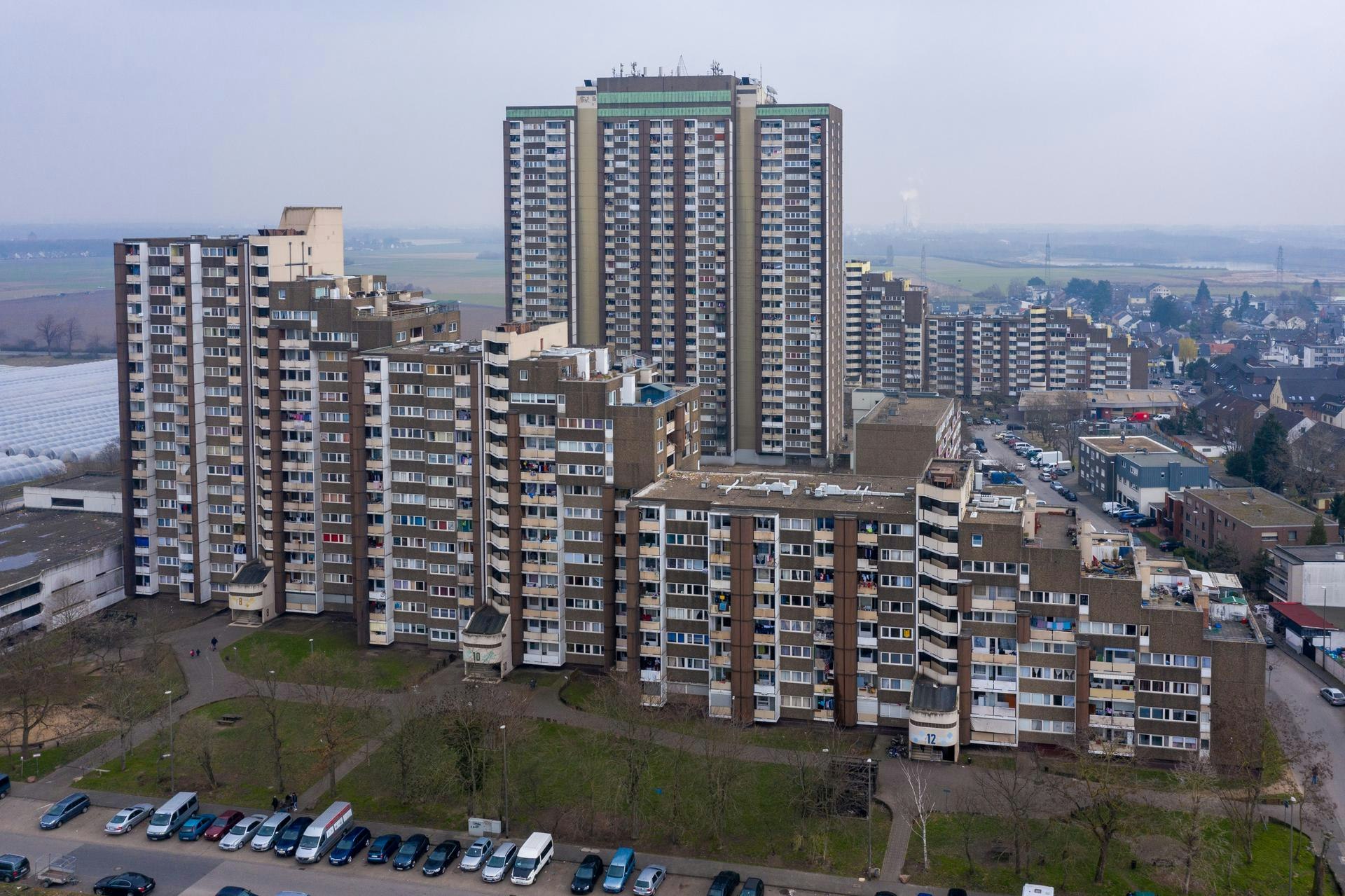 Der Kölnberg ist eine Hochhaussiedlung im Stadtteil Meschenich. Die Hochhäuser auf dem Kölnberg umfassen mehr als 1.300 Wohneinheiten. Der Kölnberg hat sich zu einem sozialen Brennpunkt entwickelt. Die Wohnungen auf dem Kölnberg werden häufig verkauft und sind oft Drehort für Fernsehsendungen, unter anderem für die Sendung Danni Lowinski. (Foto: Uwe Weiser)