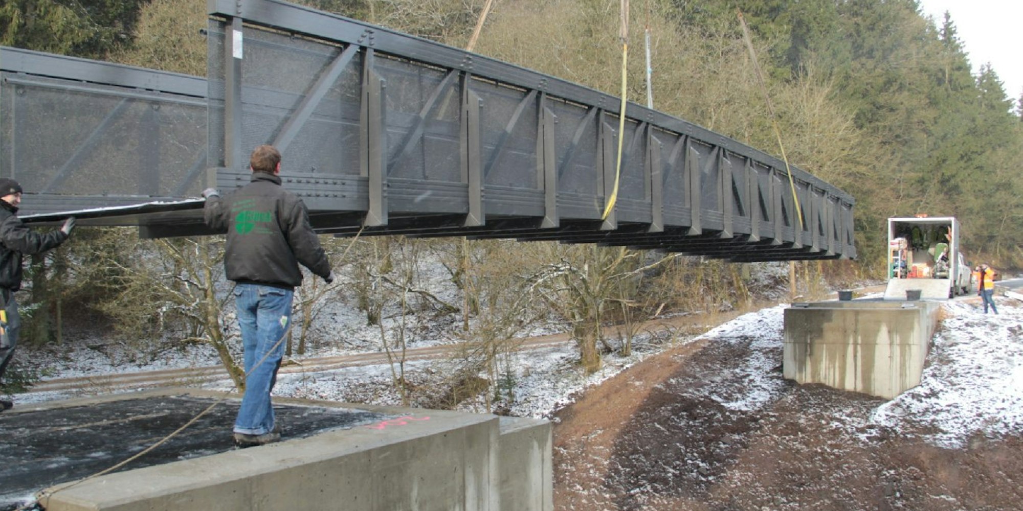 Eine neue Brücke für den Kylltalradweg wurde im Stadtkyller Höhlenberg montiert.