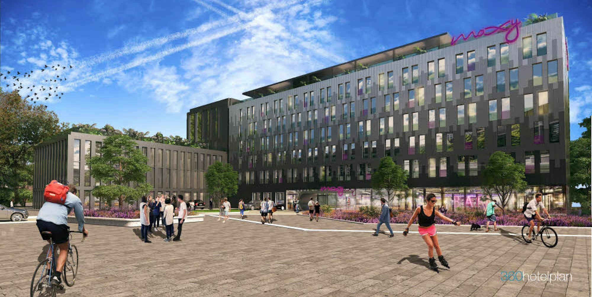 Nicht eingerechnet ist der Kostenaufwand für ein angeschlossenes Bürogebäude. 126 Zimmer wird das künftige Hotel haben, das unter der Marke „Moxy“ von Marriott firmiert und Ende 2020 eröffnen soll.