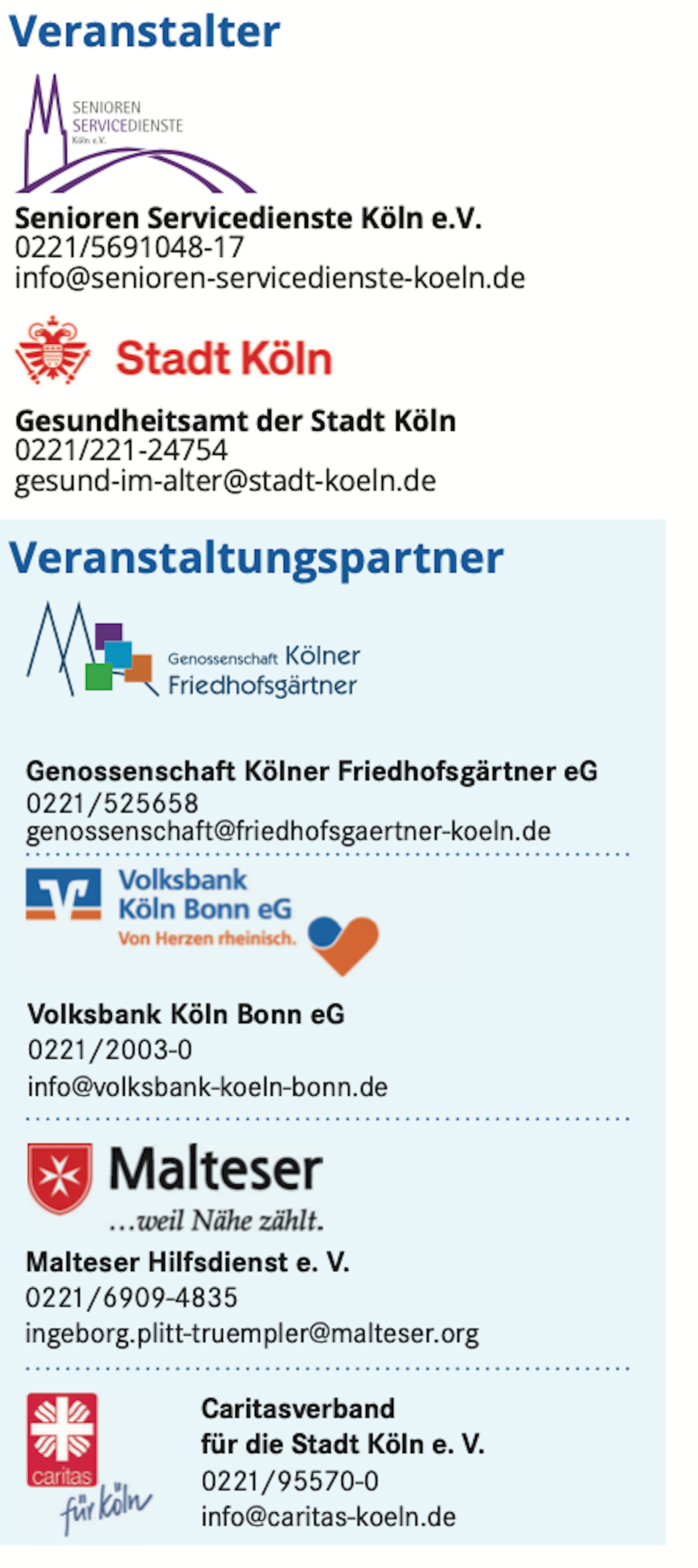 Die Veranstalter und Veranstaltungspartner des Kölner Vorsorgetags 2024.