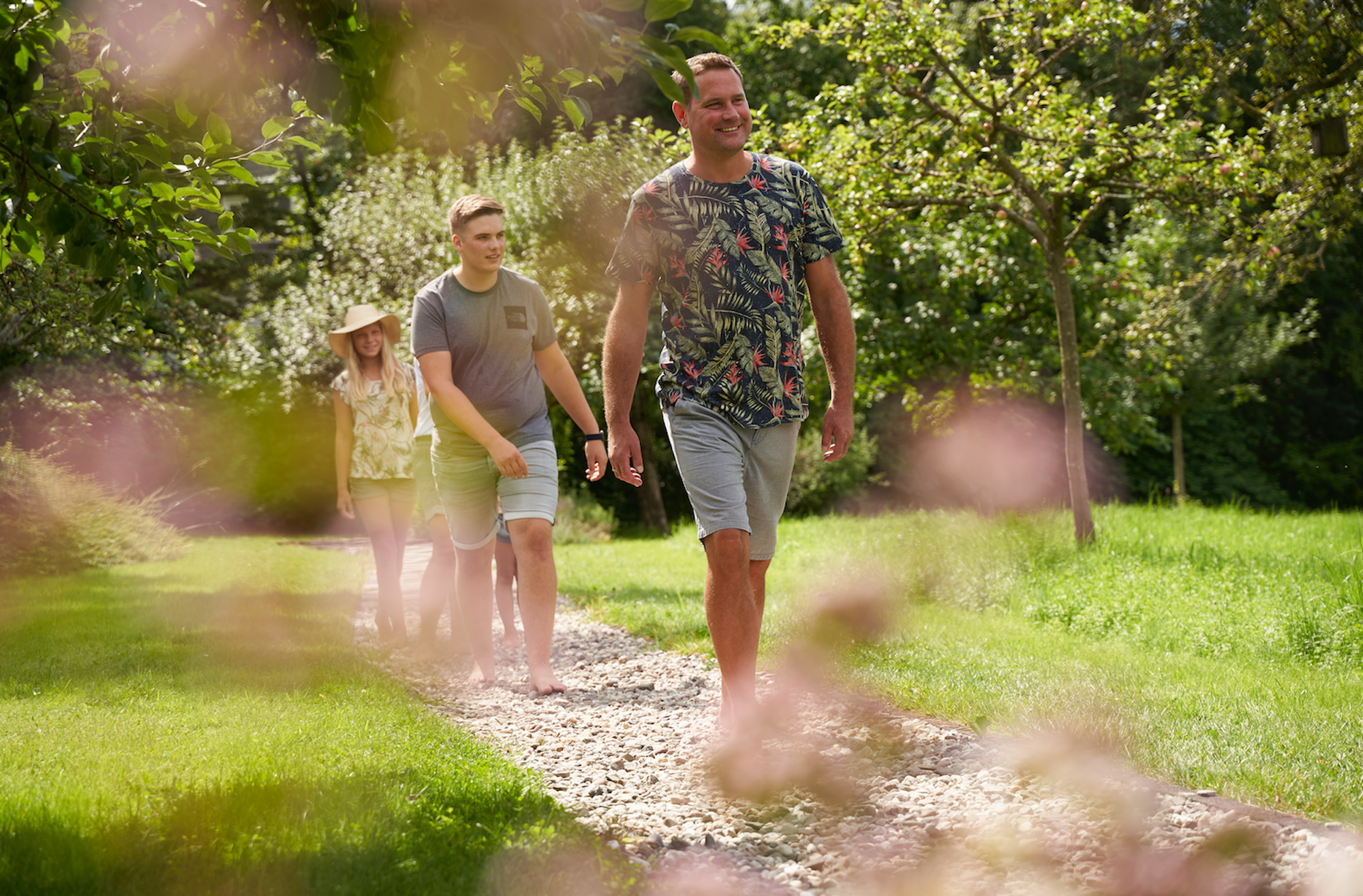 Spüren Sie die Natur unter Ihren Füßen auf dem Barfußweg. Ein Rundgang über 18 Felder mit verschiedenen Bodenbelägen regt Ihre Sinne auf angenehme Weise an. Ein Muss für Pflanzenfreunde ist der angrenzende Apothekergarten mit seinen Infotafeln zur Pflanzenheilkunde.