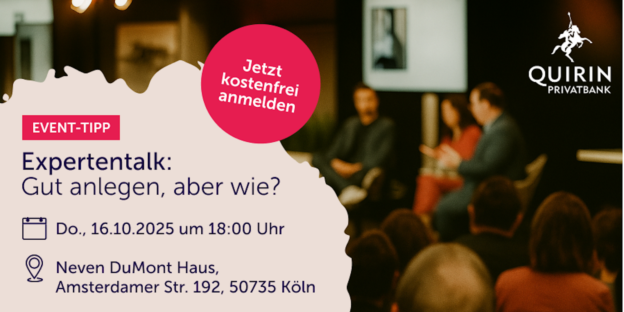 Ob kostengünstige ETFs, aktives Management oder Timing-Strategien – die Expert:innen beleuchten praxisnah, was heute wirklich funktioniert. Dazu gibt es ein exklusives Interview mit Quirin-CEO Karl Matthäus Schmidt, der über seine Vision einer fairen Finanzberatung und guten Geldanlage spricht. Im Anschluss bietet sich beim Networking ab 20 Uhr die Gelegenheit, in entspannter Atmosphäre Fragen zu stellen und neue Kontakte zu knüpfen. Für Snacks und Getränke ist gesorgt.