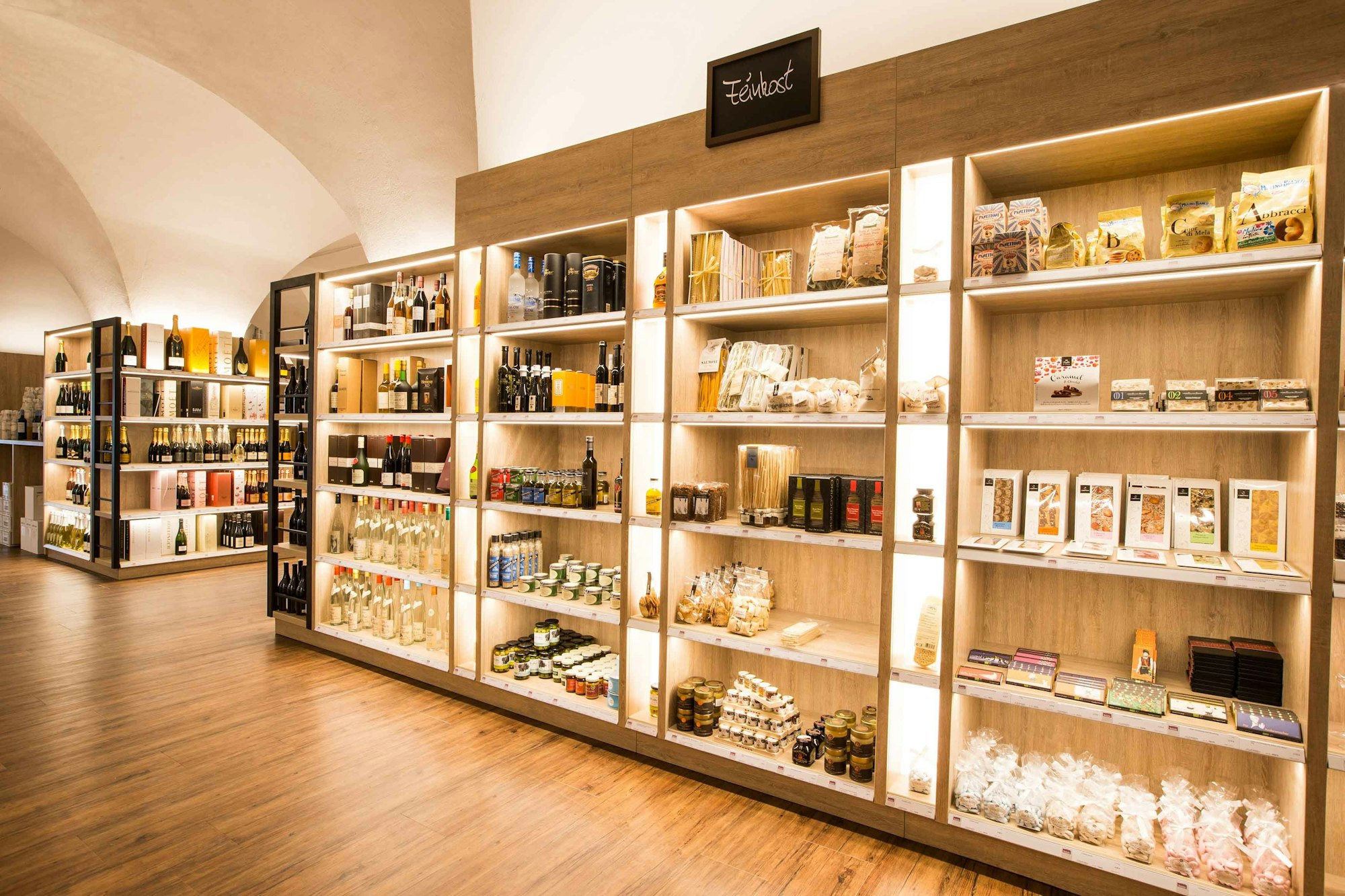 Die Experten lassen die Kundinnen und Kunden im Weinkeller der Bayer Gastronomie nicht allein: Zu allen guten Tropfen, Feinkostartikeln und Geschenkvorschlägen beraten sie gerne individuell und nehmen sich jede Menge Zeit.