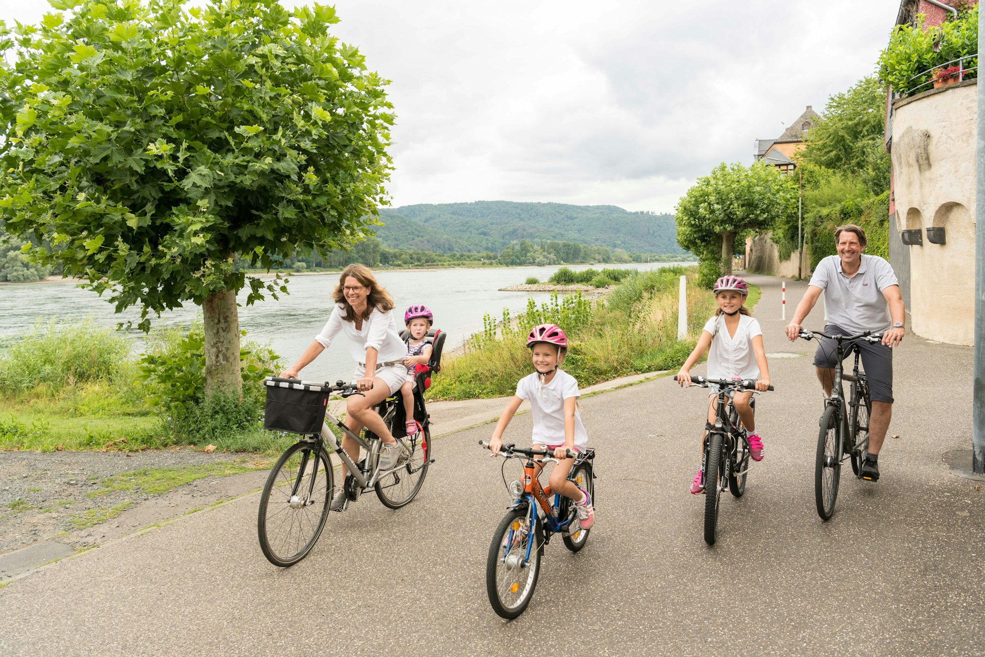 Der Rheinradweg ist dank seiner flachen Wegeführug für Klein und Groß attraktiv.