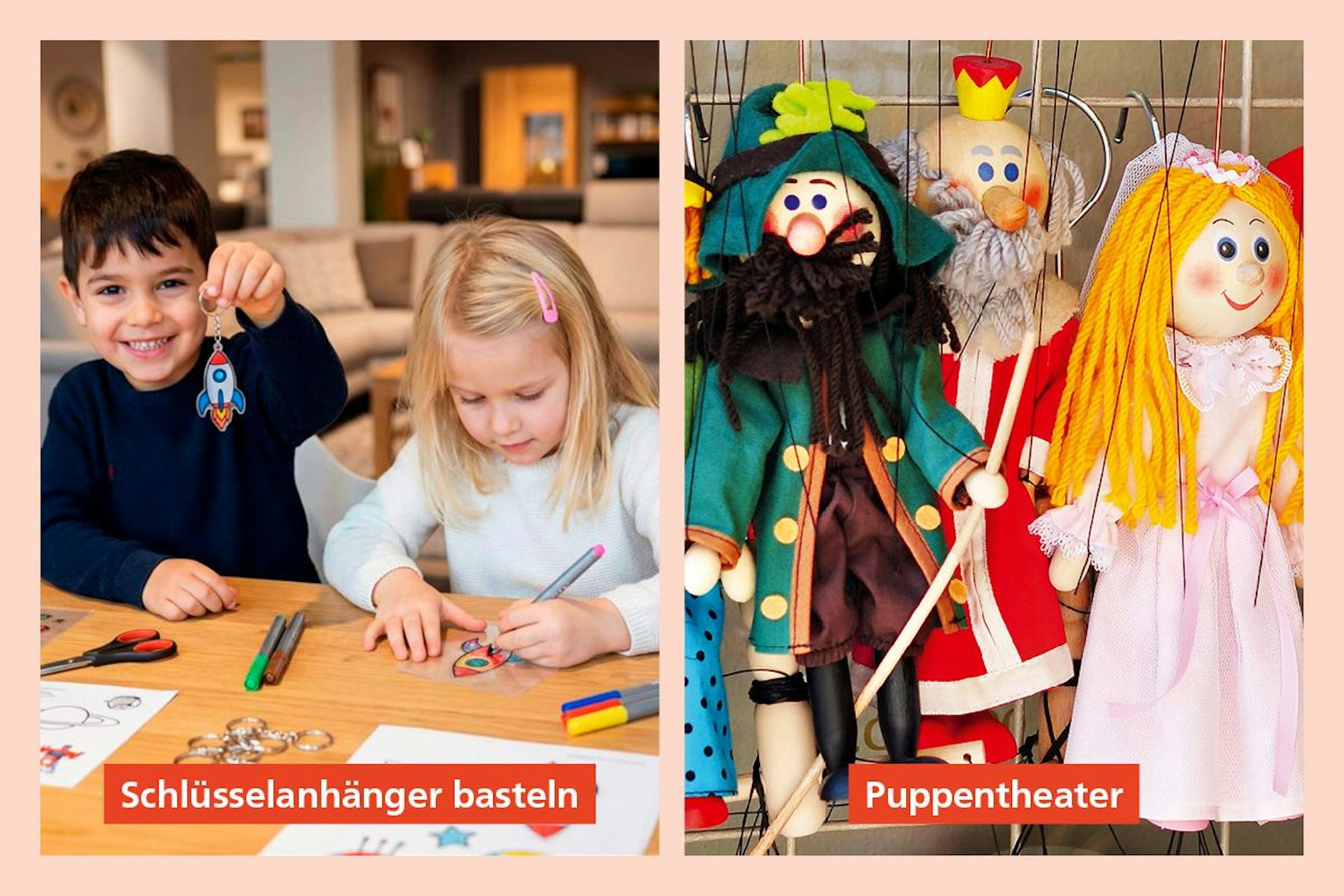 Die kleinen Besucherinnen und Besucher können Schlüsselanhänger aus Schrumpffolie basteln und die spannenden Vorstellungen der Puppenbühne Rheinland um 13, 15 und 17 Uhr erleben.