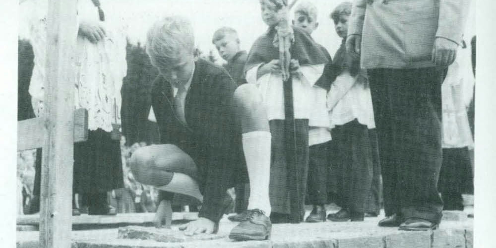 1952: Grundsteinlegung für die damals noch katholische Waldschule. Schüler Horst Pütz durfte damals mitwirken.