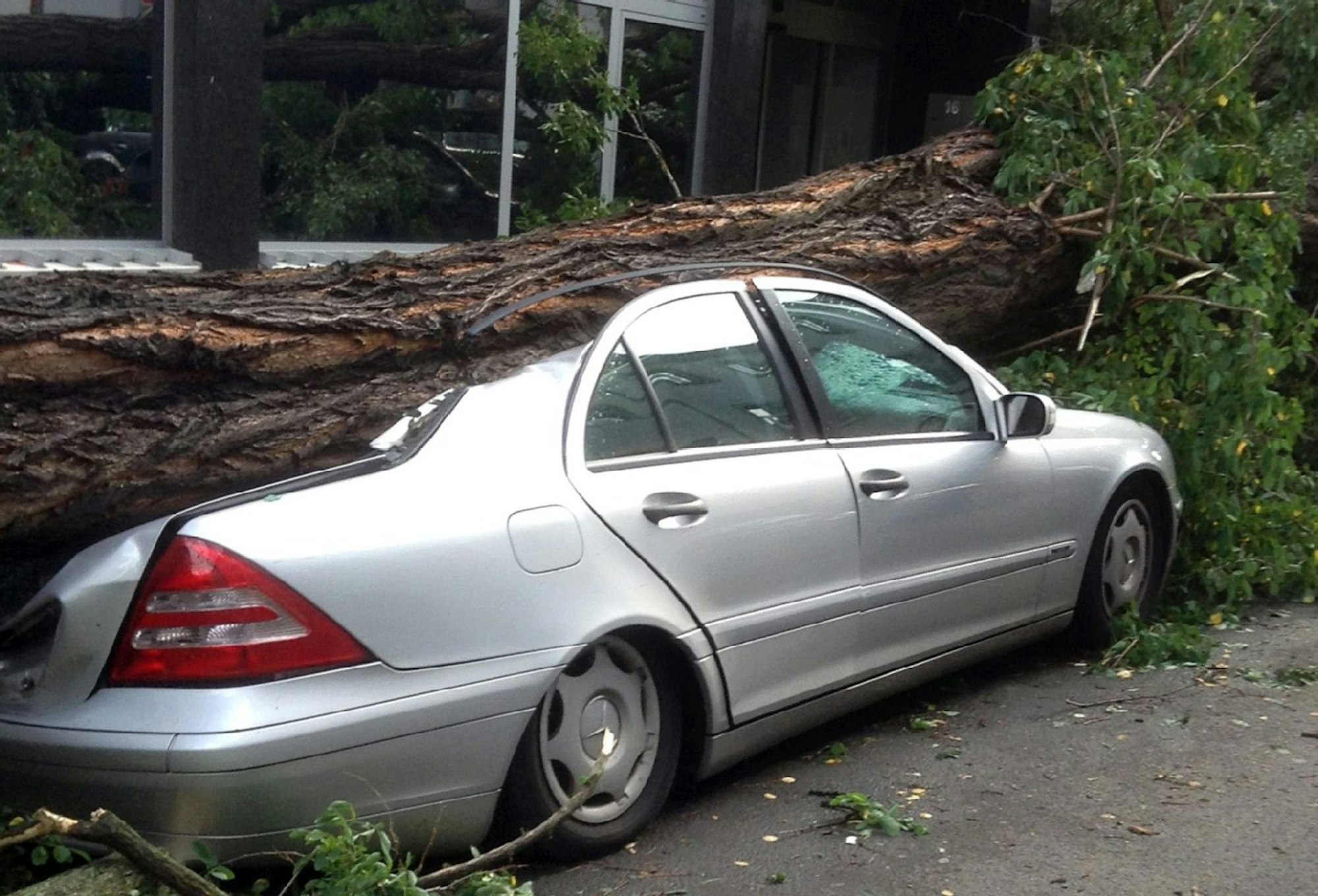 Dieses Auto wurde unter einem Baum begraben. Meist zahlt die Versicherung den Schaden. (Symbolfoto)