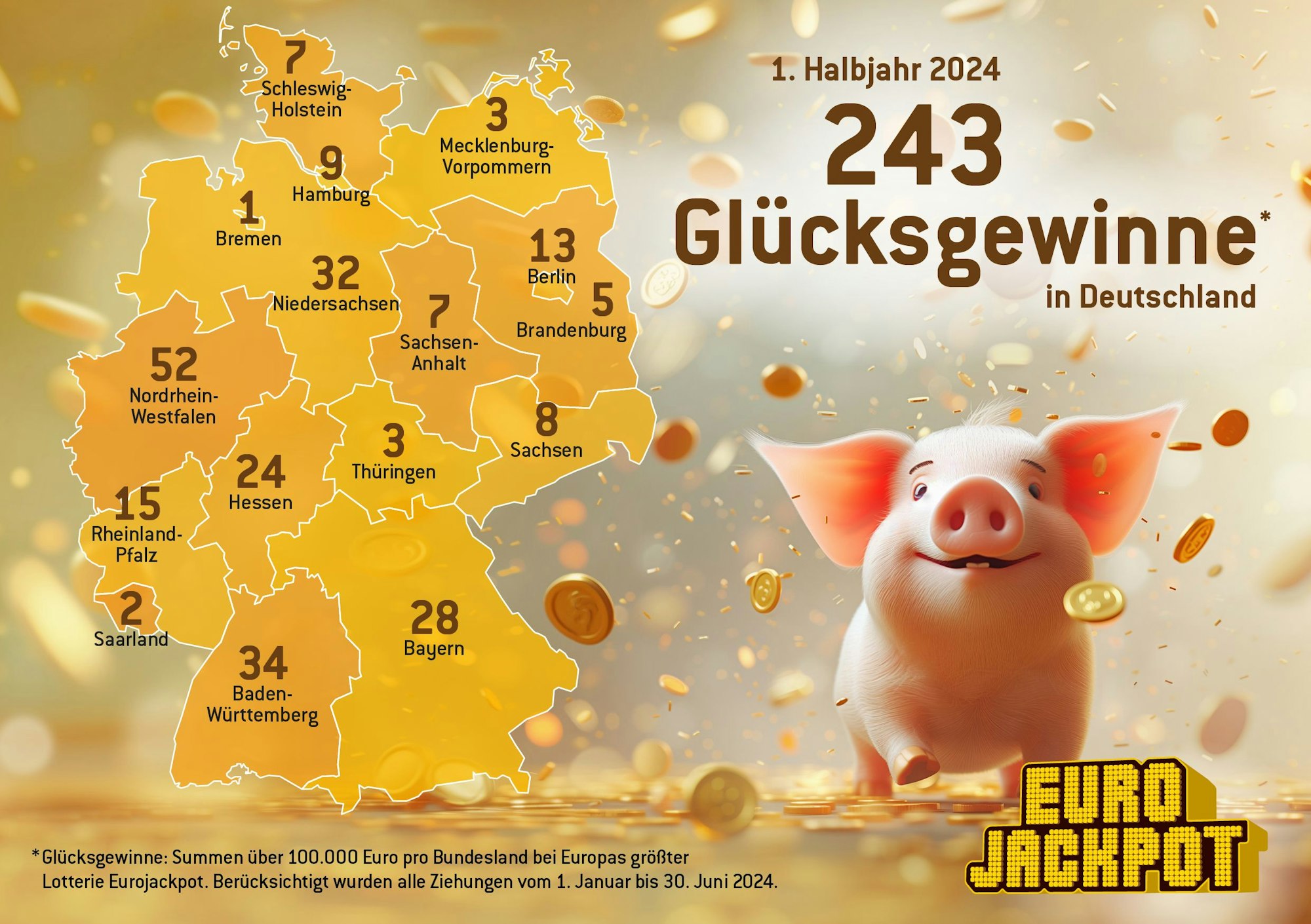 Deutsche Hochgewinner (über 100.000 Euro) für das 1. Halbjahr 2024.