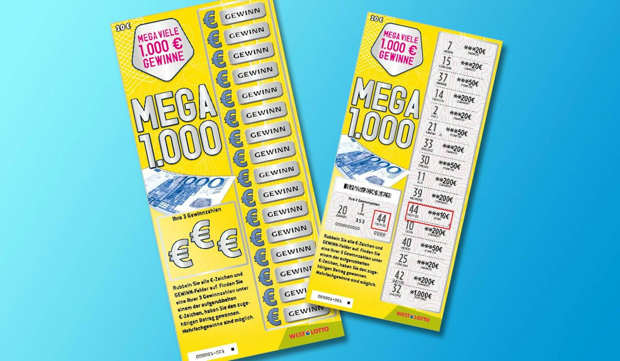 Die 1.000 wird oft dafür verwendet, wenn betont werden soll, dass etwas besonders groß ist oder oft vorkommt. In dieses Bild passt auch das neue Rubbellos MEGA 1.000 von WestLotto, dass einen Spitzengewinn in Höhe von 1.000 Euro bietet. Im Vergleich zu anderen WestLotto-Rubbellosen gibt es damit besonders viele und zudem die beste Chance auf 1.000 Euro-Beträge (Chance 1:1.000).