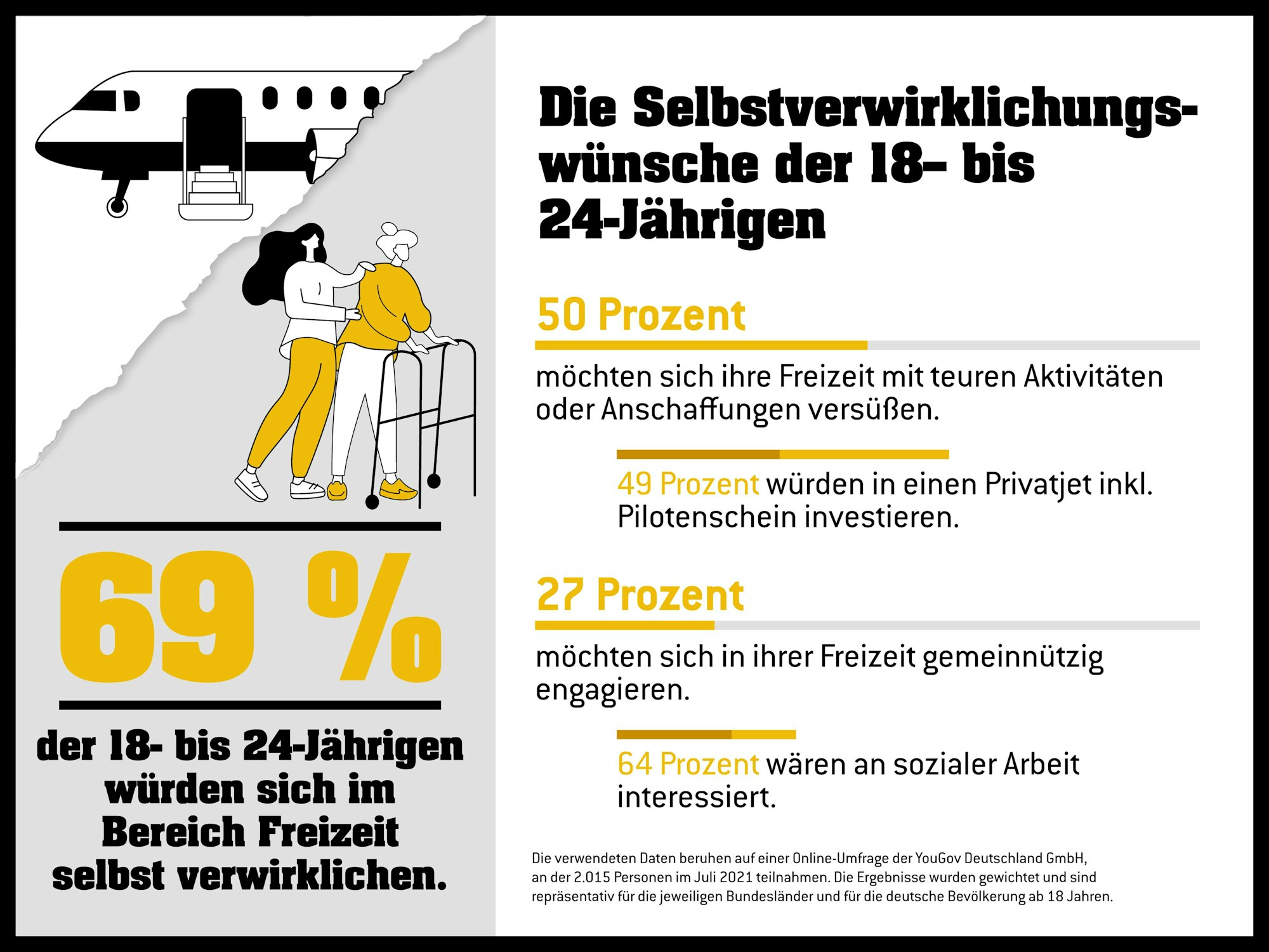 Grundsätzlich würden sich mehr als zwei Drittel der 18- bis 24-Jährigen im Bereich Freizeit selbst verwirklichen.