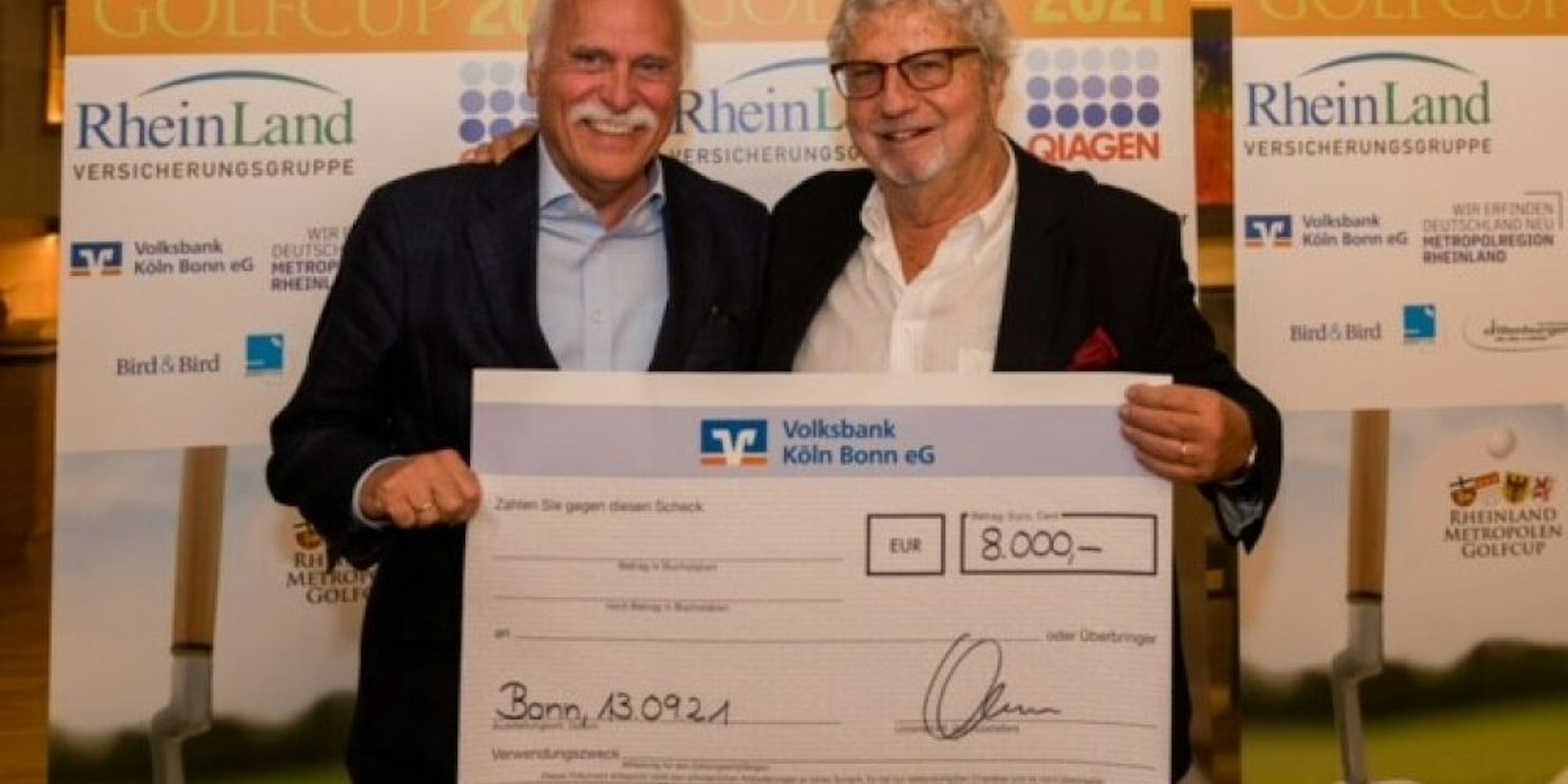 Wachtberg – Das Kölner Team hat beim Rheinland Metropolen Golfcup 8000 Euro gewonnen und den Betrag großzügig an „wir helfen“ gespendet. Unter der Führung von Teamcaptain und Initiator des Cups, Claus Dillenburger, erreichte es zur Überraschung aller Platz drei vor dem Team aus Aachen, das im Vorjahr das gemeinnützige Turnier gewann. In diesem Jahr trafen sich die Spielerinnen und Spieler im Golfclub Bonn-Godesberg in Wachtberg. Die Gastgeber aus Bonn gewannen den mit 16 000 Euro dotierten ersten Platz knapp vor dem sonst oft siegreichen Team aus Düsseldorf.
