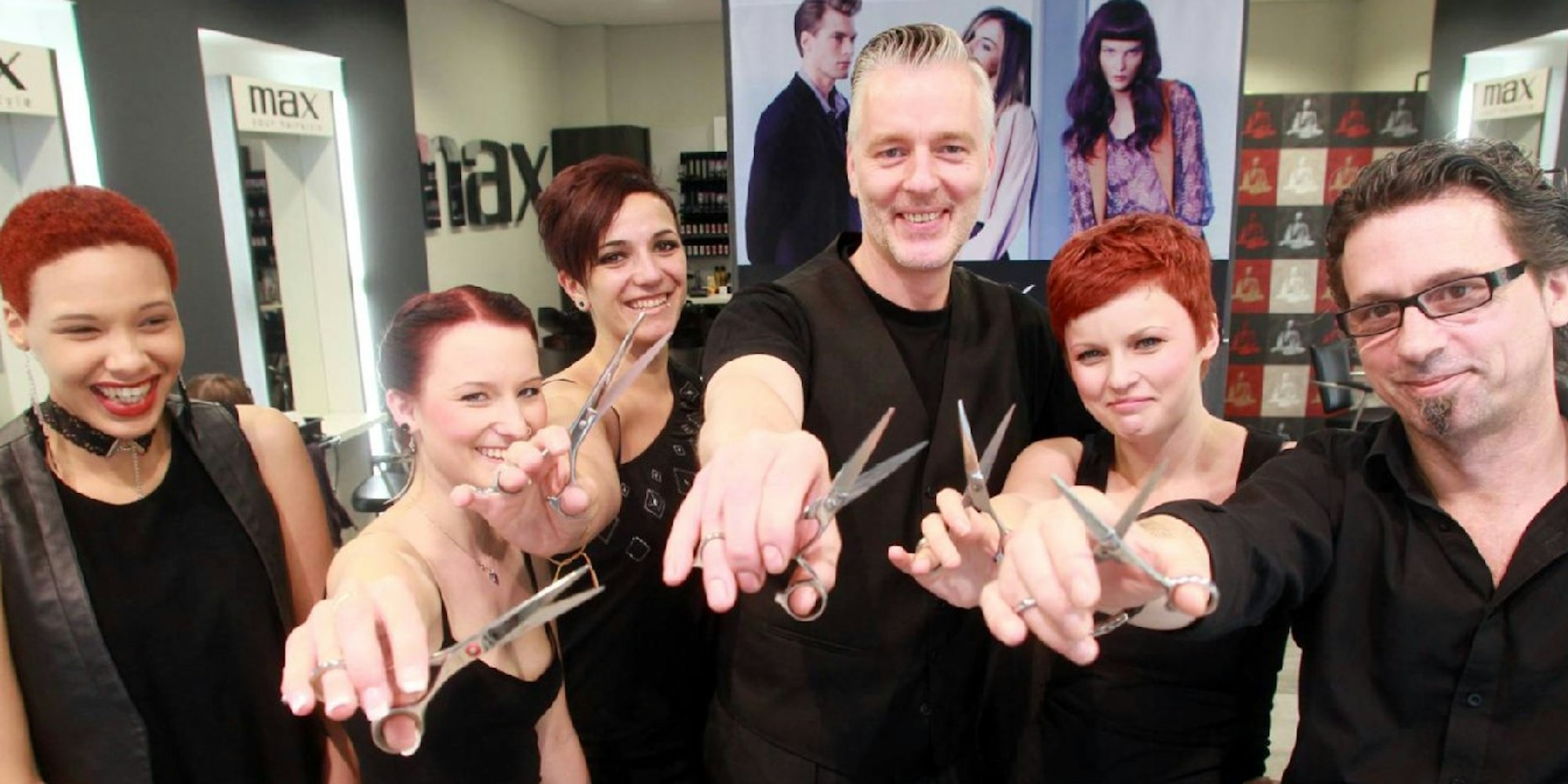 Das Team von Max your hairstyle mit Chef Guido Schweiger hat schon mal die Scheren gezückt.