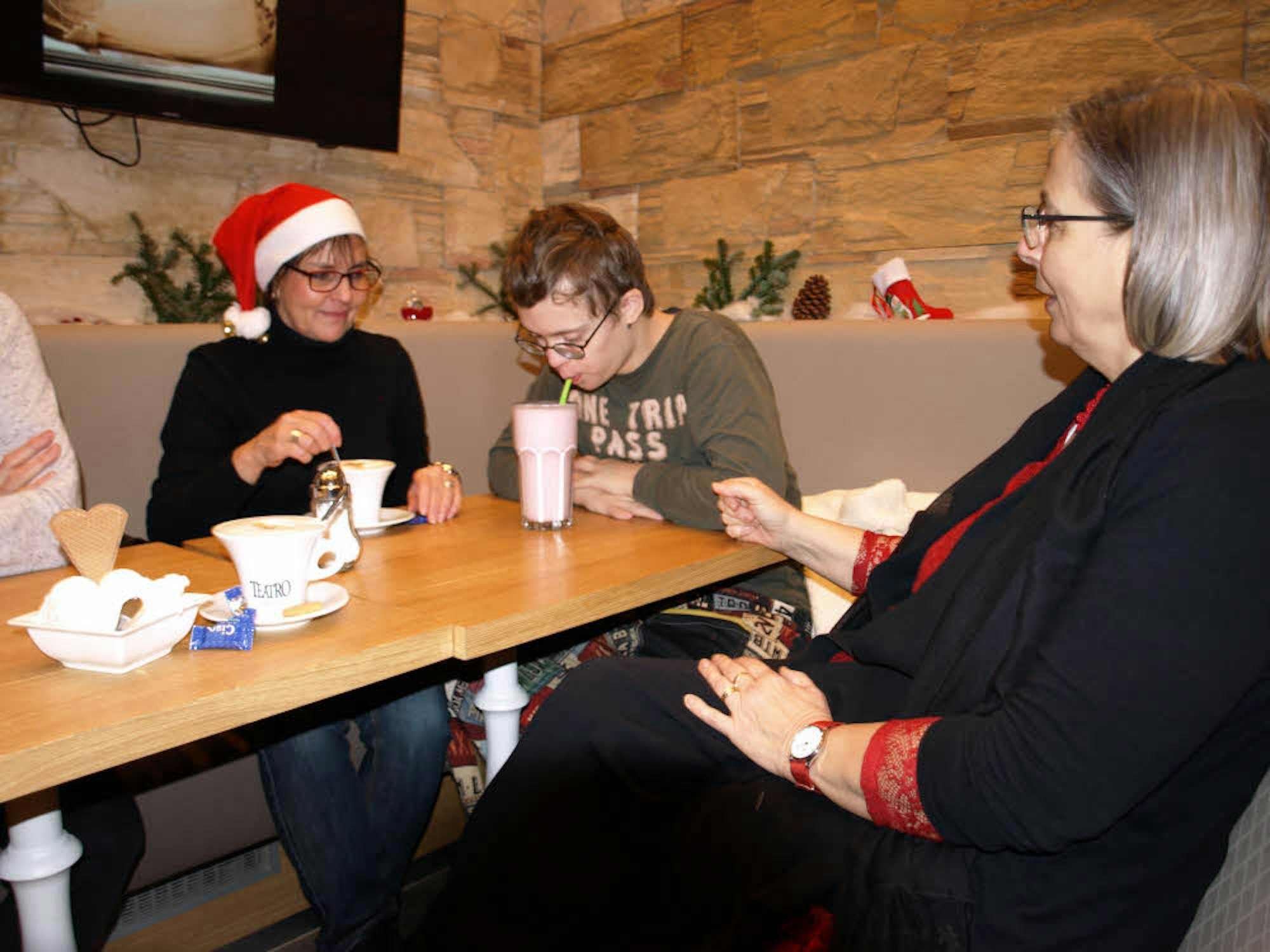 Bei dem Bummel über den Weihnachtsmarkt darf Tivon in eine Ritterrüstung schlüpfen. Überall locken Gerüche und Leckereien, doch der 15-Jährige steuert nach einiger Zeit schnurstracks auf eine Eisdiele zu. Eis essen, das geht für Tivon immer. Auch bei drei Grad Celsius Außentemperatur. Im Café bestellt er sein Lieblingsgetränk: einen riesigen Becher Erdbeer-Shake.