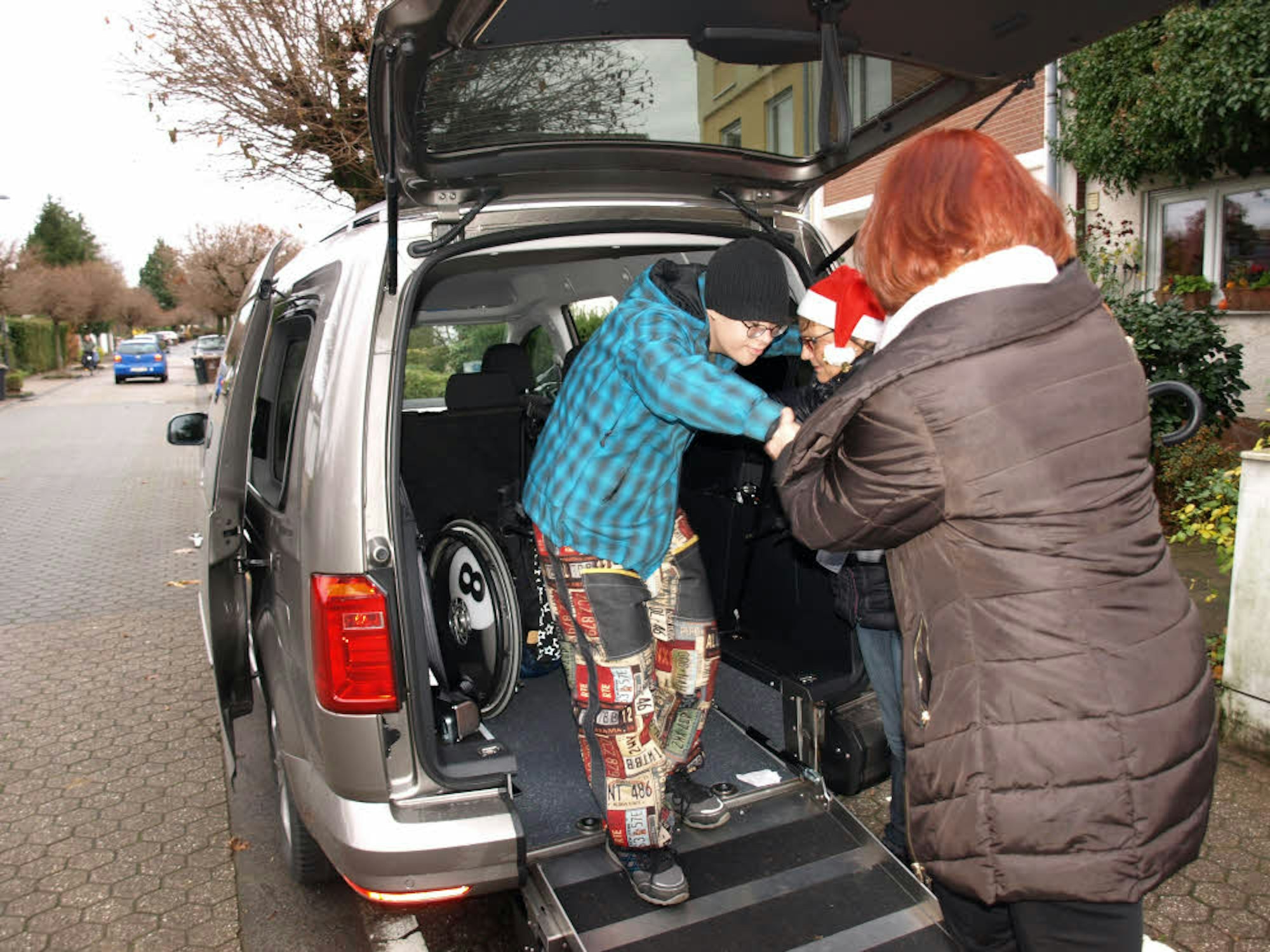 Seit Oktober hat die bundesweit tätige Initiative „Hits fürs Hospiz“ mit Sitz in Overath den Caddy im Programm. Erwachsene und Kinder wie Tivon, die an einer lebensbedrohlichen oder lebensverkürzenden Krankheit leiden, haben dank des neuen großen Autos die Chance auf einen ganz besonderen Tag – einen Ausflug ins Fußballstadion, eine Fahrt ans Meer oder wie heute, einen Besuch auf dem Weihnachtsmarkt. Tagesfahrten von bis zu 350 Kilometer Entfernung sind möglich. Die Bedingungen: Ein formloser Antrag beim Verein und ein Wohnort maximal 25 Kilometer entfernt von Overath.