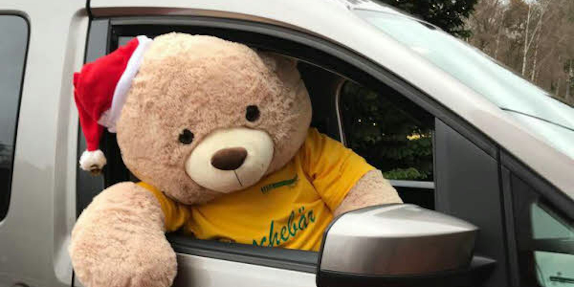 Liebevoll verabschiedet Tivon seinen Therapiehund Sima und dann geht es los. Der 15-Jährige ist ein fröhlicher, lustiger und aufgeweckter Junge. Besonders begeistert ist er von Berti, dem riesigen Stoffbären und Maskottchen des Wünschemobils. Berti muss in Tivons Rolli Platz nehmen und darf dann im VW-Caddy neben ihm auf der Rückbank sitzen.