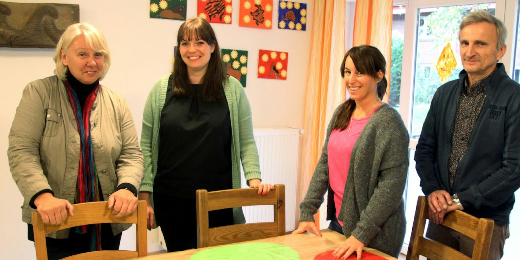 Die Therapeutinnen Ulla Altwicker (v.l.) und Anna Mütsch mit Diplom-Heilpädagogin Rebecca Reiß und Franz Klose aus der Verwaltung