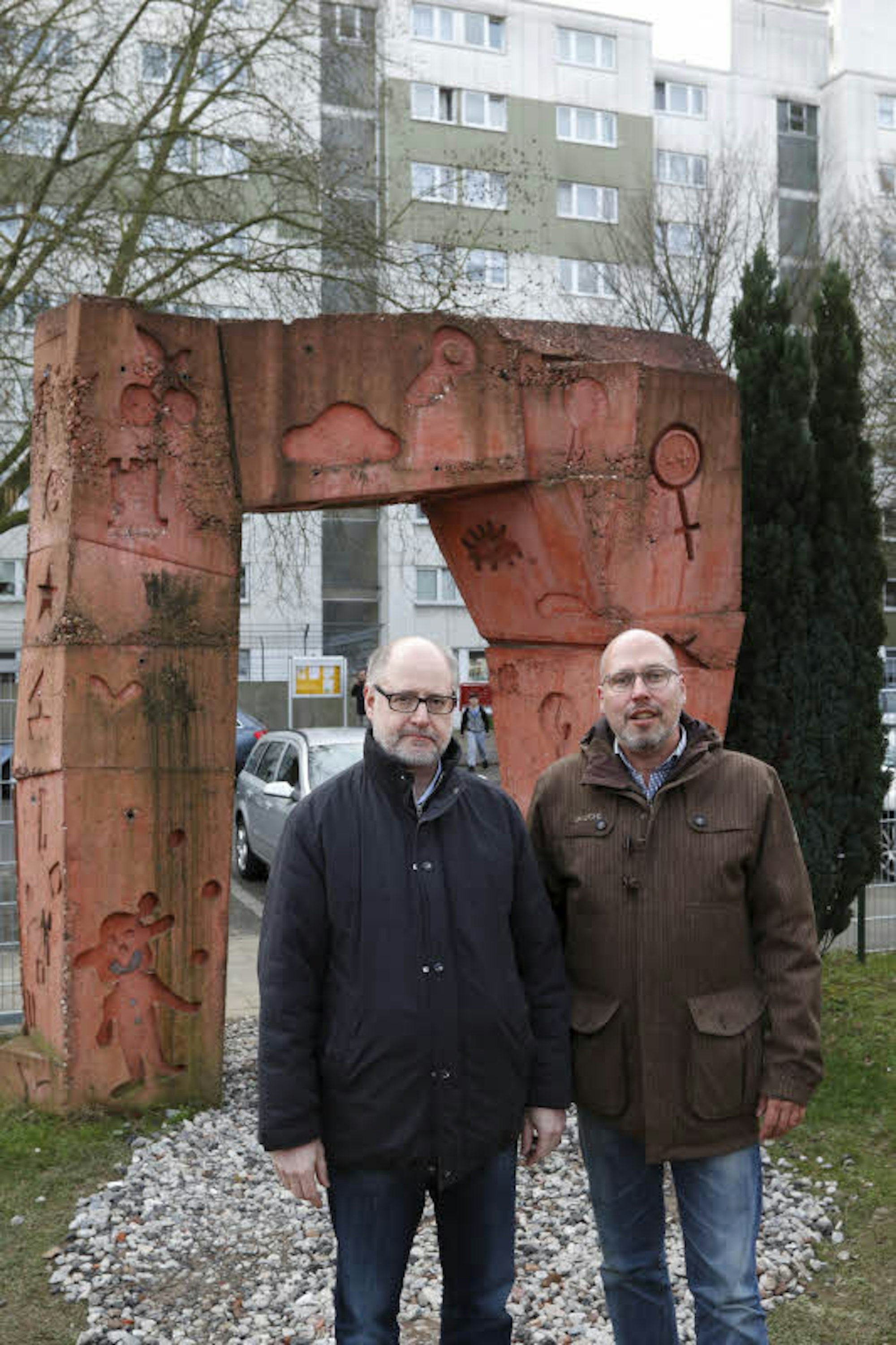 Gero Karaschewski (links) mit Sozialraumkoordinator Andreas Hansmann am Wunschtor