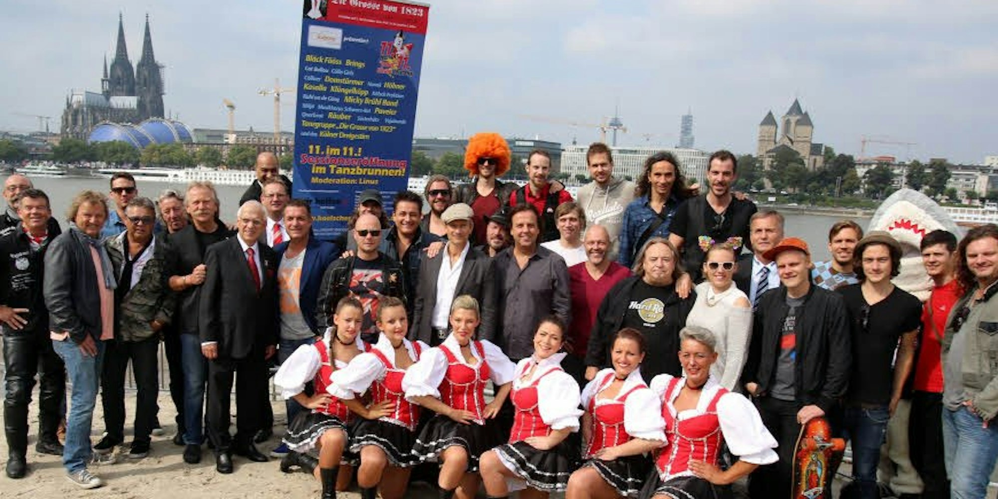 Vor der zweiten Auflage der rechtsrheinischen Sessionseröffnung bestens aufgelegt: einige der Künstler rund um Große-Präsident Joachim Zöller