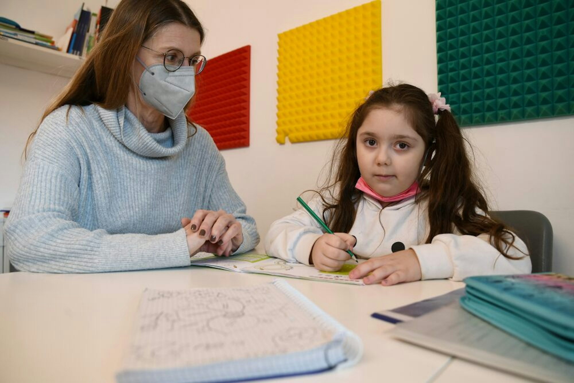 Bei den Hausaufgaben bekommt Maria Unterstützung.