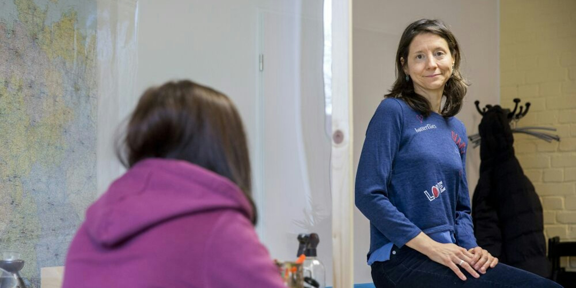 Auf Abstand neben ihr sitzt Linda Bruchholz, Traumatherapeutin für Kinder und Jugendliche. Die Psychologin kennt viele Geschichten wie Rahas. Als die Eltern zu den älteren Geschwistern nach Frankfurt ziehen, hilft Bruchholz Raha, eine eigene Wohnung zu finden, damit sie in Köln bleiben kann. „Wir helfen auf zwei Ebenen: psychologisch-seelisch-emotional und praktisch“, erläutert die Beraterin. Etwa 100 junge Zugewanderte im Alter von zwölf bis 27 kamen in den vergangenen drei Jahren zu ihr und ihren Kolleginnen, manche nur einmal, andere über Monate.