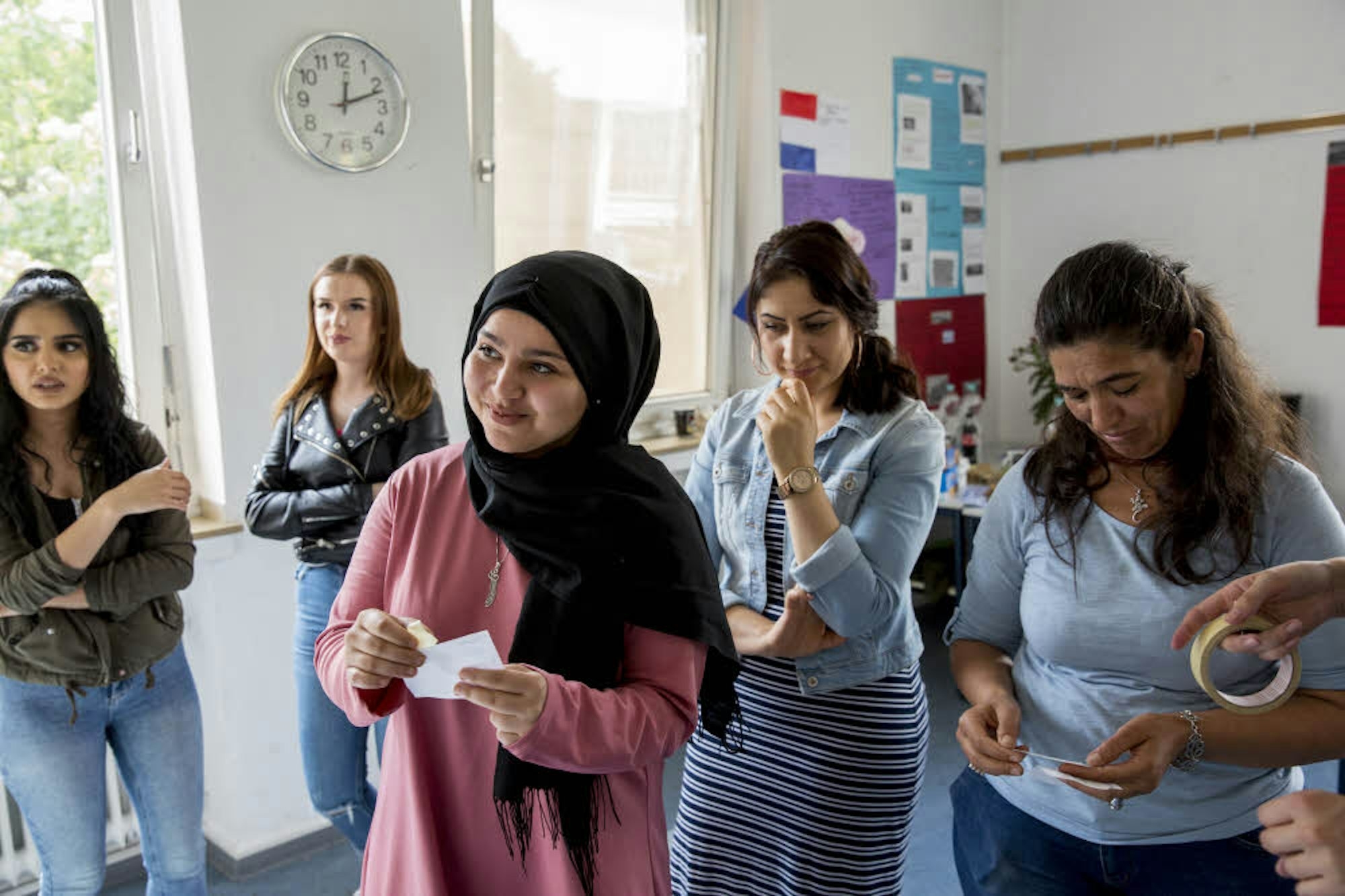 Ihre Heimat liegt in Bosnien oder Bulgarien , in Syrien und dem Irak, in der Türkei, Afghanistan, Marokko, Deutschland, in Griechenland oder Ghana. Die meisten von ihnen sind geflüchtet – und traumatisiert. Vor neun Uhr, wenn der Frauenkurs in der TAS beginnt, und danach ab 13.30 Uhr, müssen sie sich um ihre Kinder, Geschwister und/oder Ehemänner kümmern, um ihre kranken Eltern und/oder dementen Großeltern, um den Haushalt, den Mini-Job – und ihre Hauptschul-, Realschul- oder Fachhochschulreife. Meist erst in der Nacht, wenn Ruhe eingekehrt ist in ihren stressigen Alltag.