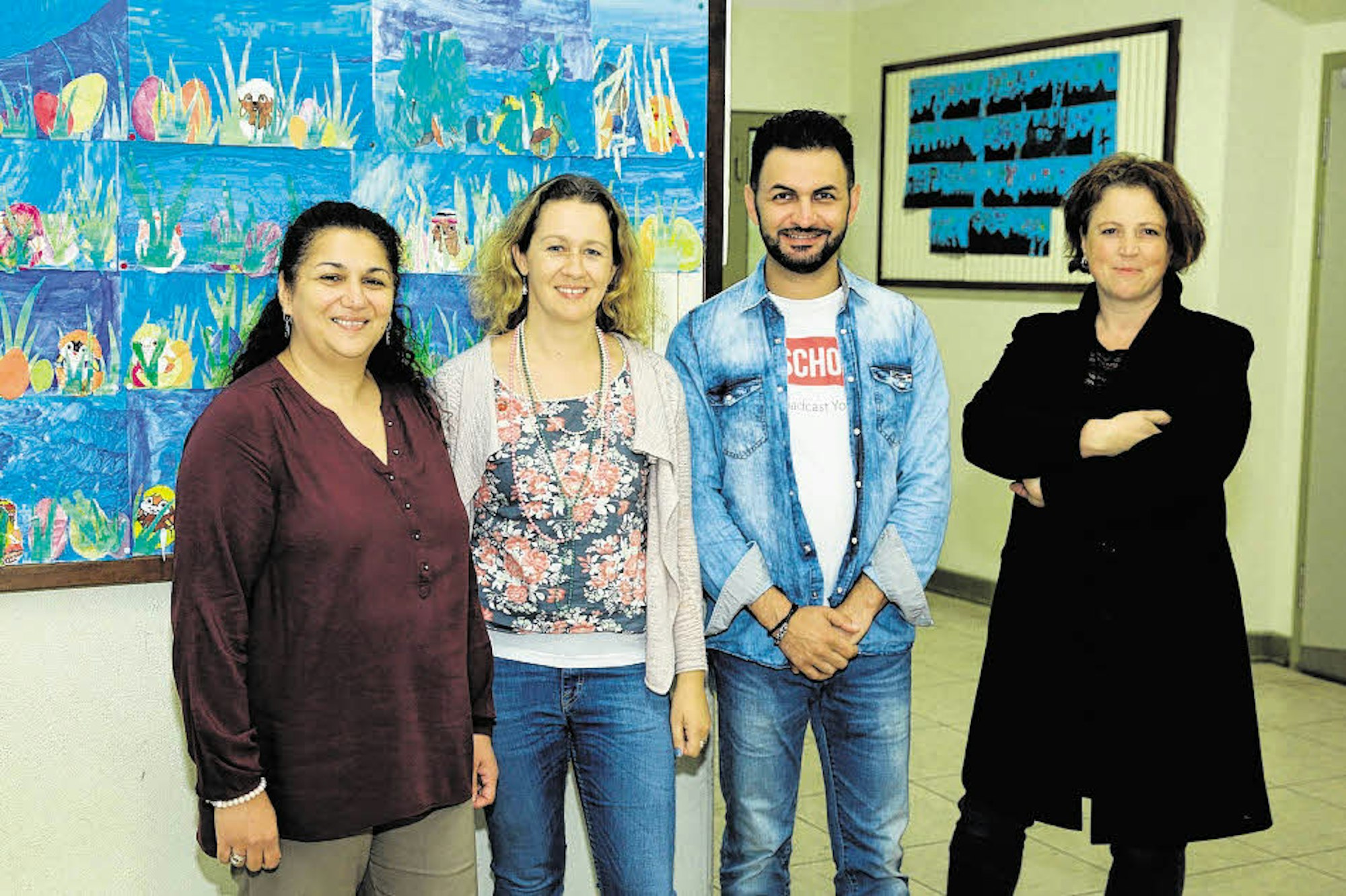 Ismeta Stojkovic, Schulleiterin Angela Lingens, Enis Ibraimi und Christina von Haugwitz (von links)