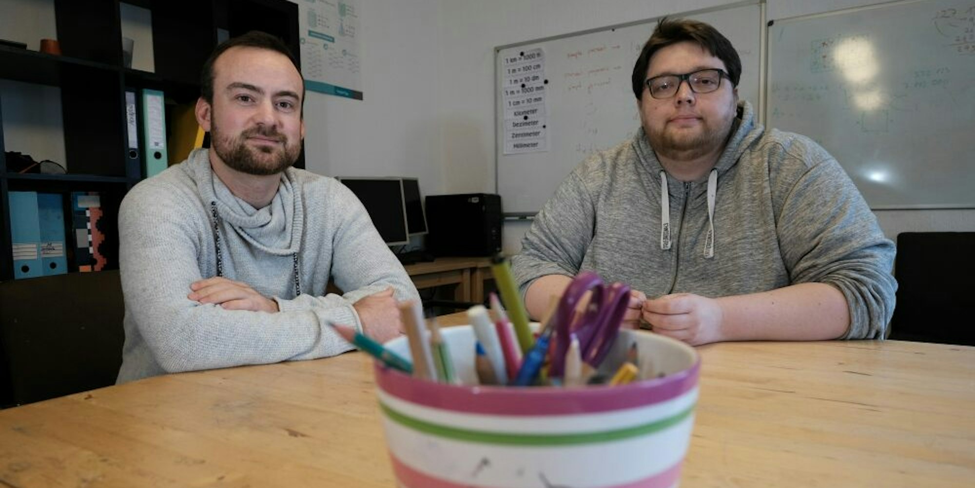 Ole Fritz (l.) und Benjamin Bröhl von „Mobile“ unterstützen Jugendliche, die in einer Regelschule keinen Abschluss gemacht haben.