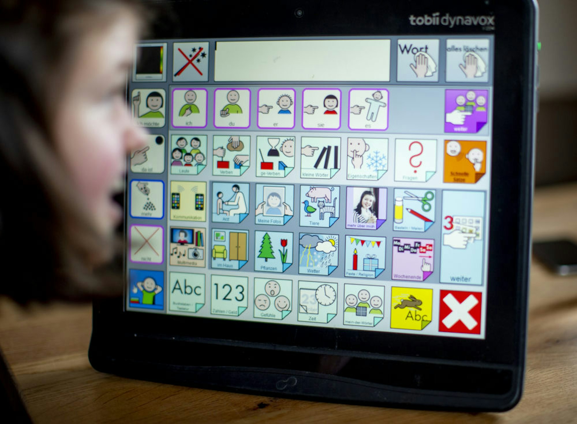 Mithilfe des Sprachcomputers kommuniziert die 14-Jährige.