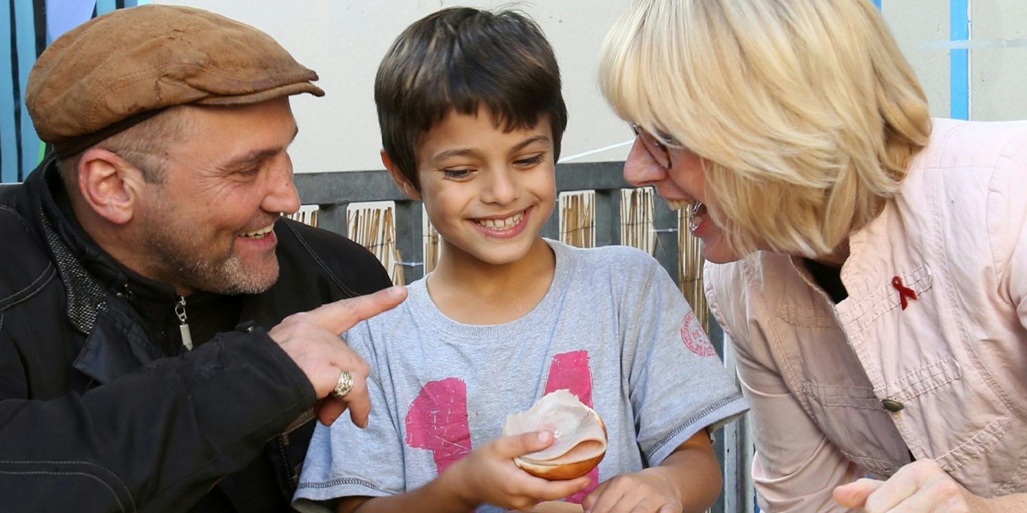 Streetworker Franco Clemens, Sam (8) und Bürgermeisterin Elfi Scho-Antwerpes (v. l.) bei der Eröffnung des Büros.
