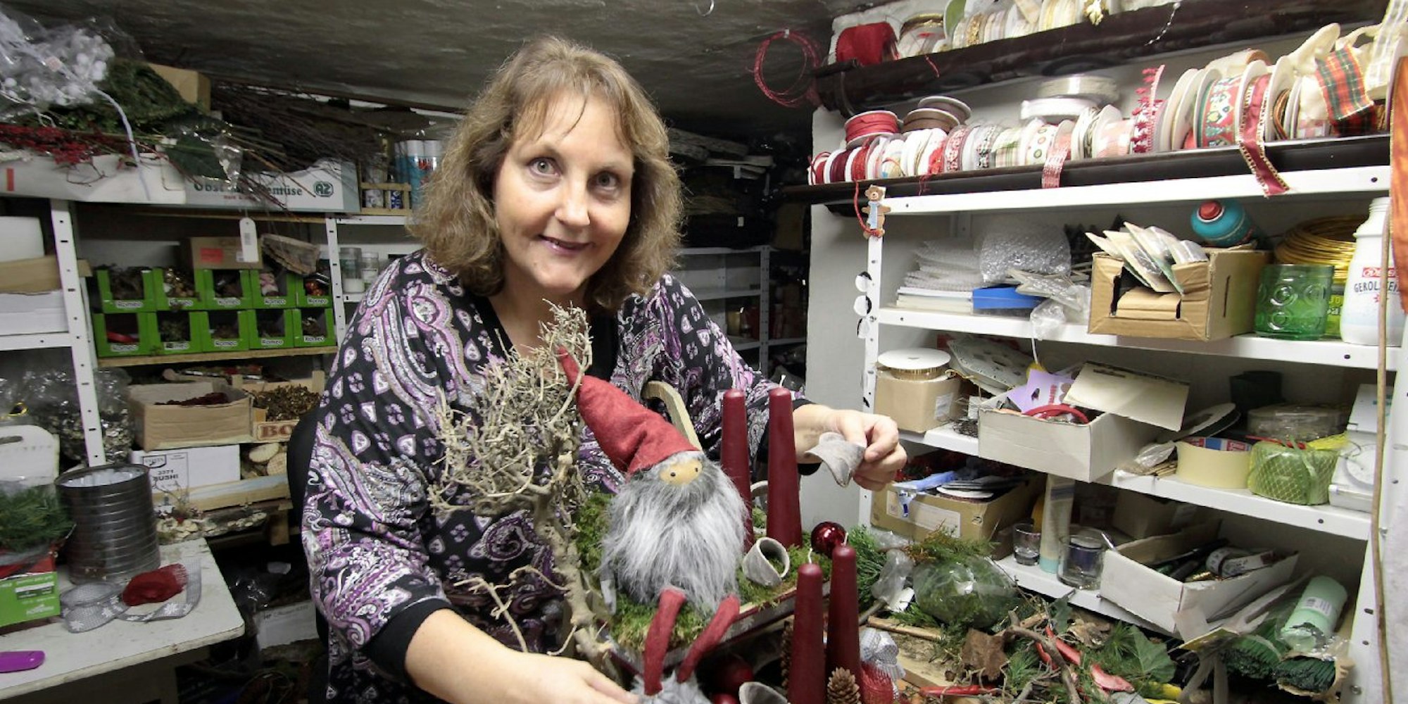 Köln – Seit acht Wochen herrscht im Heim von Eva-Maria Berg-Schmitz und Wim Grimbergen Ausnahmezustand. Knuffige, rote Wichtel haben das Wohnzimmer besetzt, in der Küche wurde Platz geschaffen für opulent geschmückte Weihnachtskrippen, Lichthäuser und Kerzen-Gestecke und den Keller hat das Paar mit Tannenzapfen, Korkeiche, Filz und vielen anderen Materialien vollgestopft.