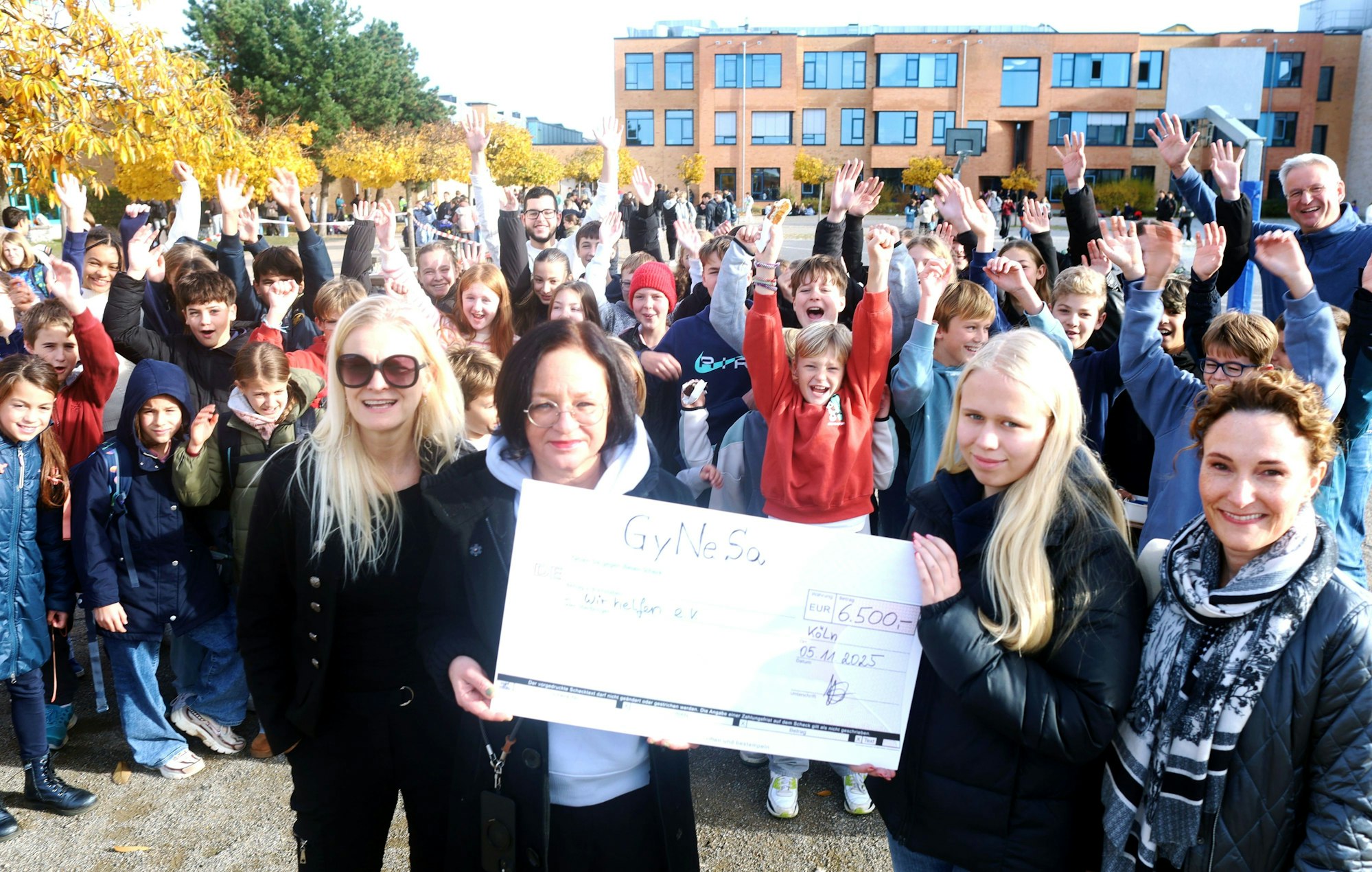 Ehrenwort: Bei „wir helfen“ löst jeder gespendete Cent, jede Benefiz-Aktion zugunsten der Aktion dieser Zeitung für Kinder und Jugendliche in Not Jubelrufe aus! Besonders groß ist die Freude immer dann, wenn junge Menschen sich für junge Menschen engagieren – und damit kleine Personen zu großen „wir helfen“-Helden werden. Wie im Fall der Schülerinnen und Schüler des Widdersdorfer „Gymnasium Neue Sandkaul“ („GyNeSa“) besser gesagt: wie im Fall der ganzen Schulgemeinschaft, die im Sommer unter dem Motto „Kinder helfen Kindern“ einen Projekttag „wir helfen“ gewidmet und einen Benefiz-Sponsorenlauf organisiert hat.
