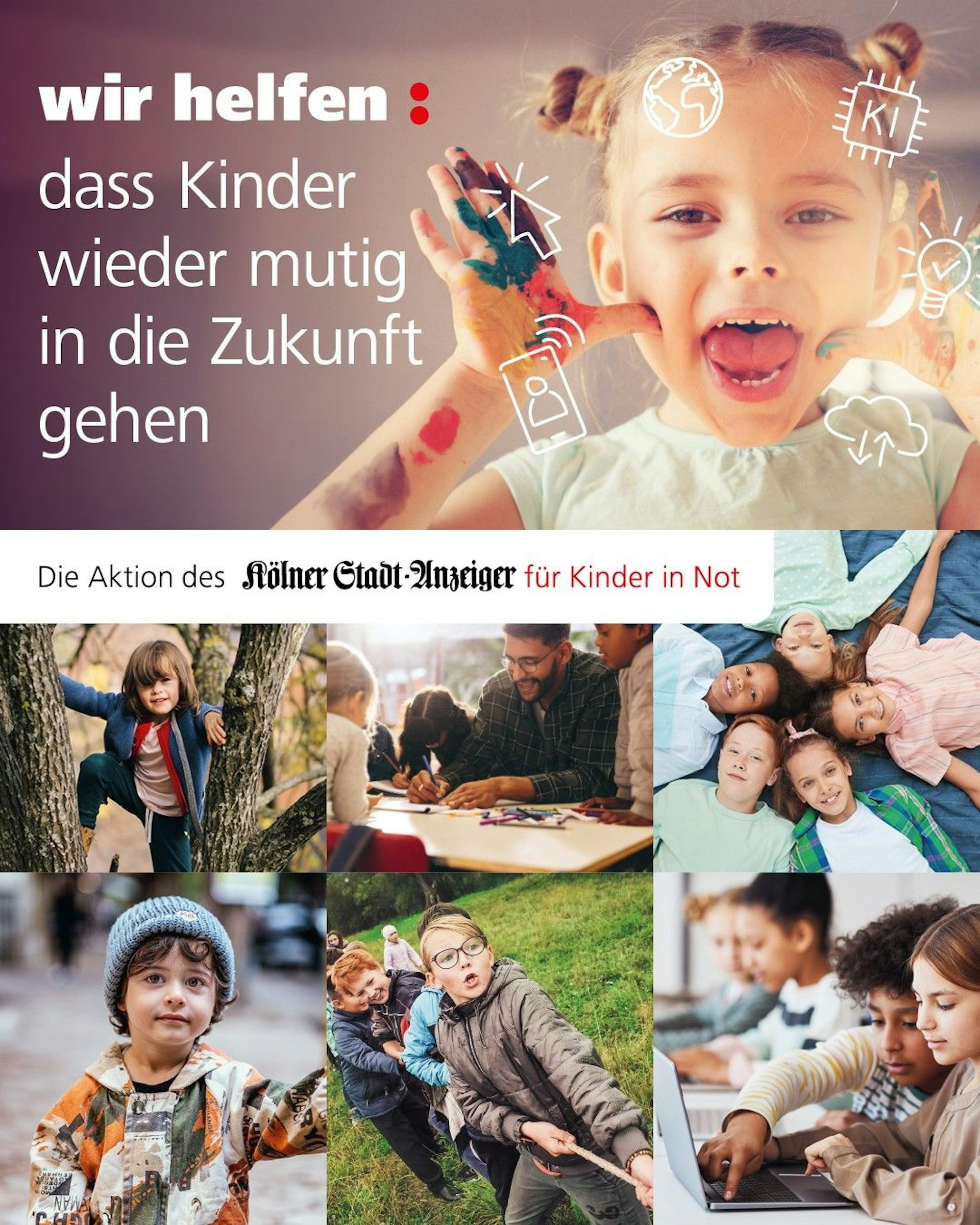 - Mit unserer neuen Jahresaktion „wir helfen: dass Kinder wieder mutig in die Zukunft gehen“ bitten wir um Spenden für Projekte in Köln und der Region, die benachteiligten Kindern und Jugendlichen zu einer motivierenden Zukunftsperspektive verhelfen und die Kompetenzen, die sie dafür brauchen, fördern.