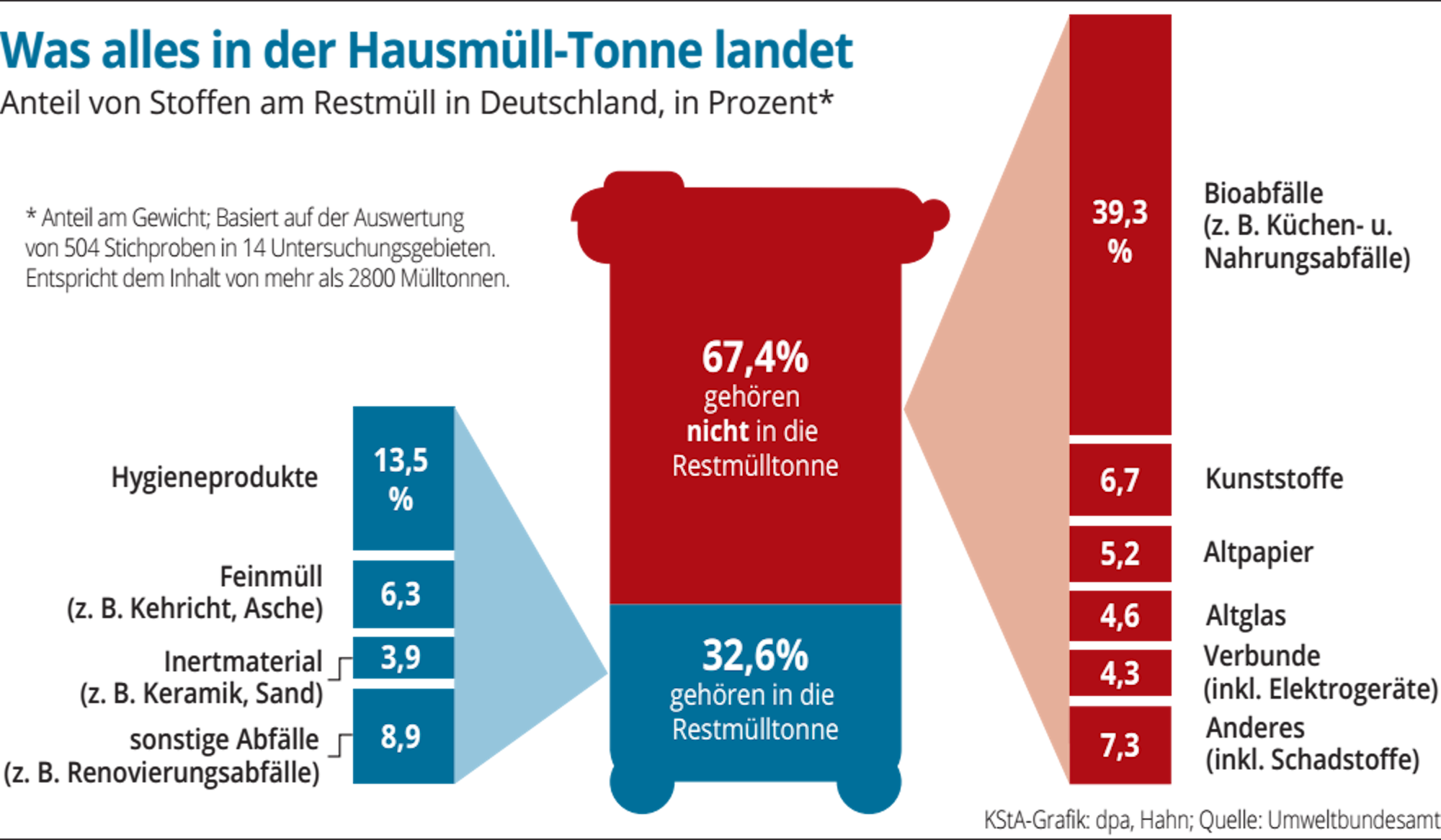 - Das Umweltbundesamt legt Ergebnisse der ersten Restmüll-Analyse seit 1985 vor. Ab 2018 haben Helfer dafür 504 Stichproben sortiert.